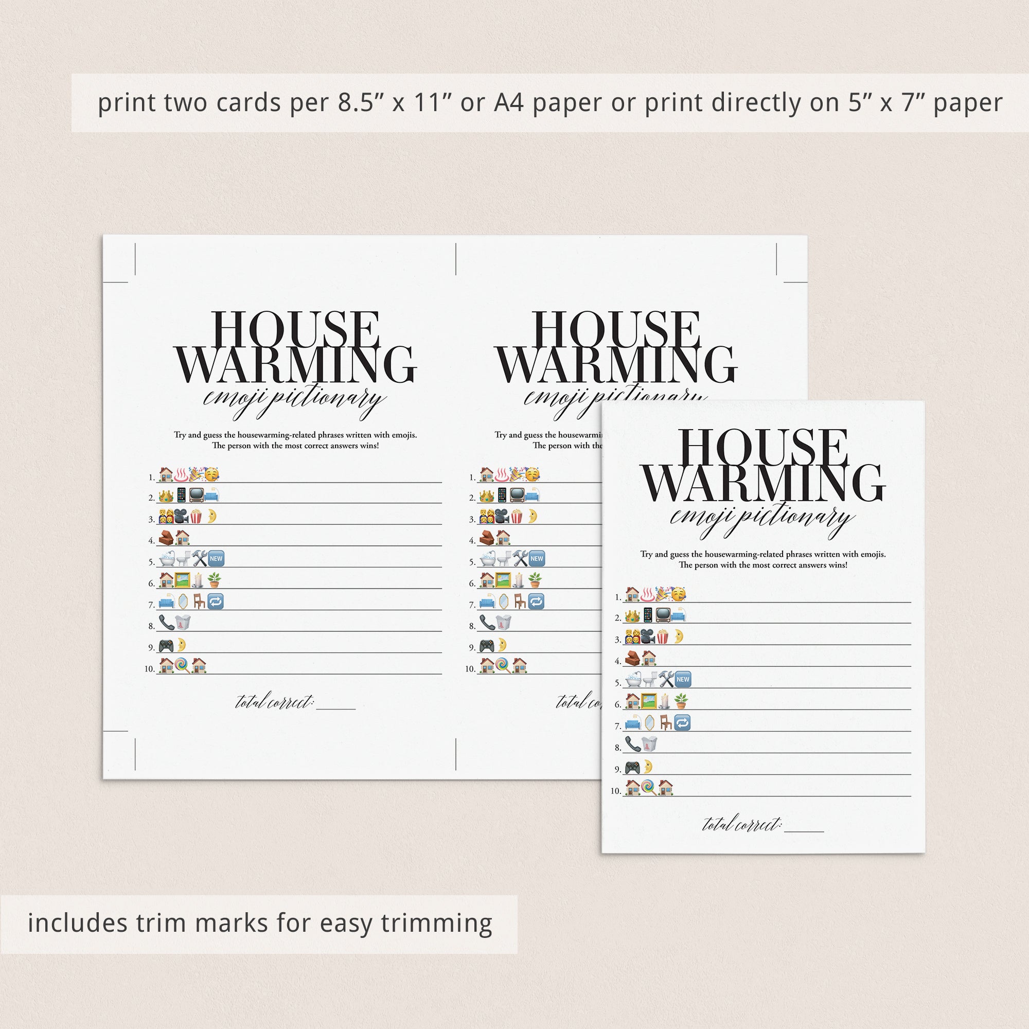Are you looking for a fun game to play at your housewarming party? Play Emoji Pictionary! It's a great game for all ages. This modern black and white housewarming emojis game will fit any housewarming party theme.