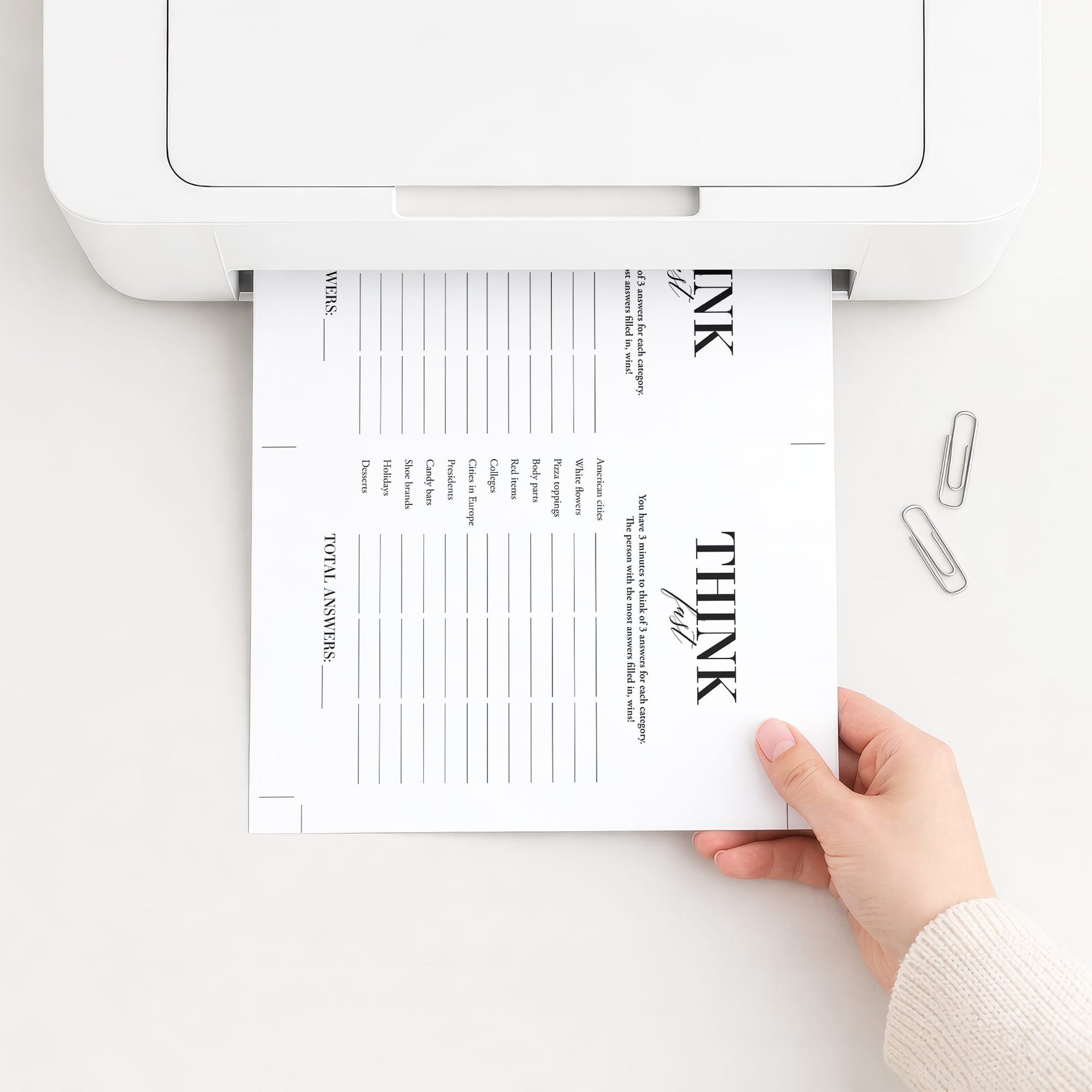 Print the game right from your computer in a matter of minutes or have the cards printed at your favorite print shop. The game has been designed in black and white. You can print on kraft paper to create a rustic look or print on colored card stock to match your party color palette. We recommend printing on a nice heavy card stock for highest quality feel.