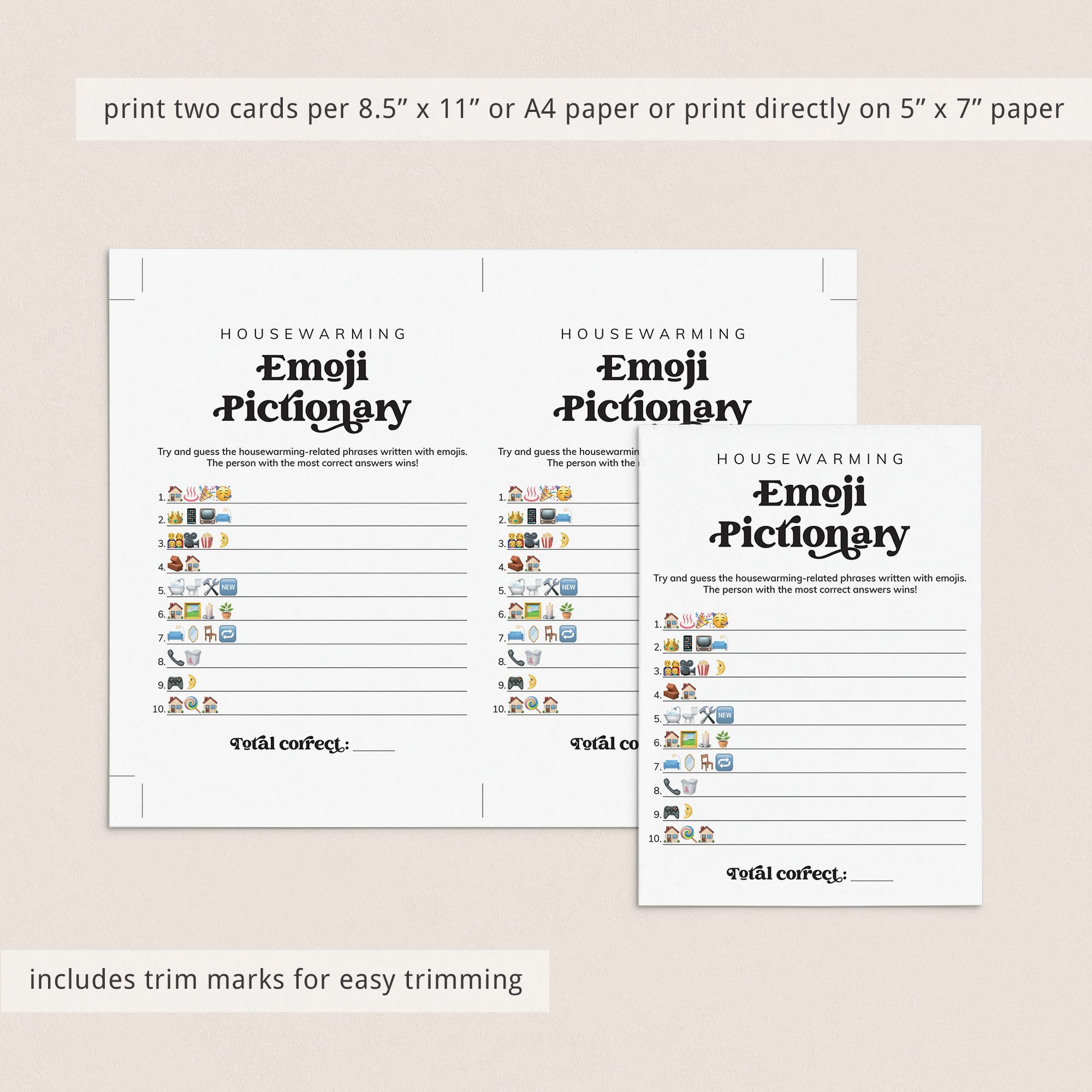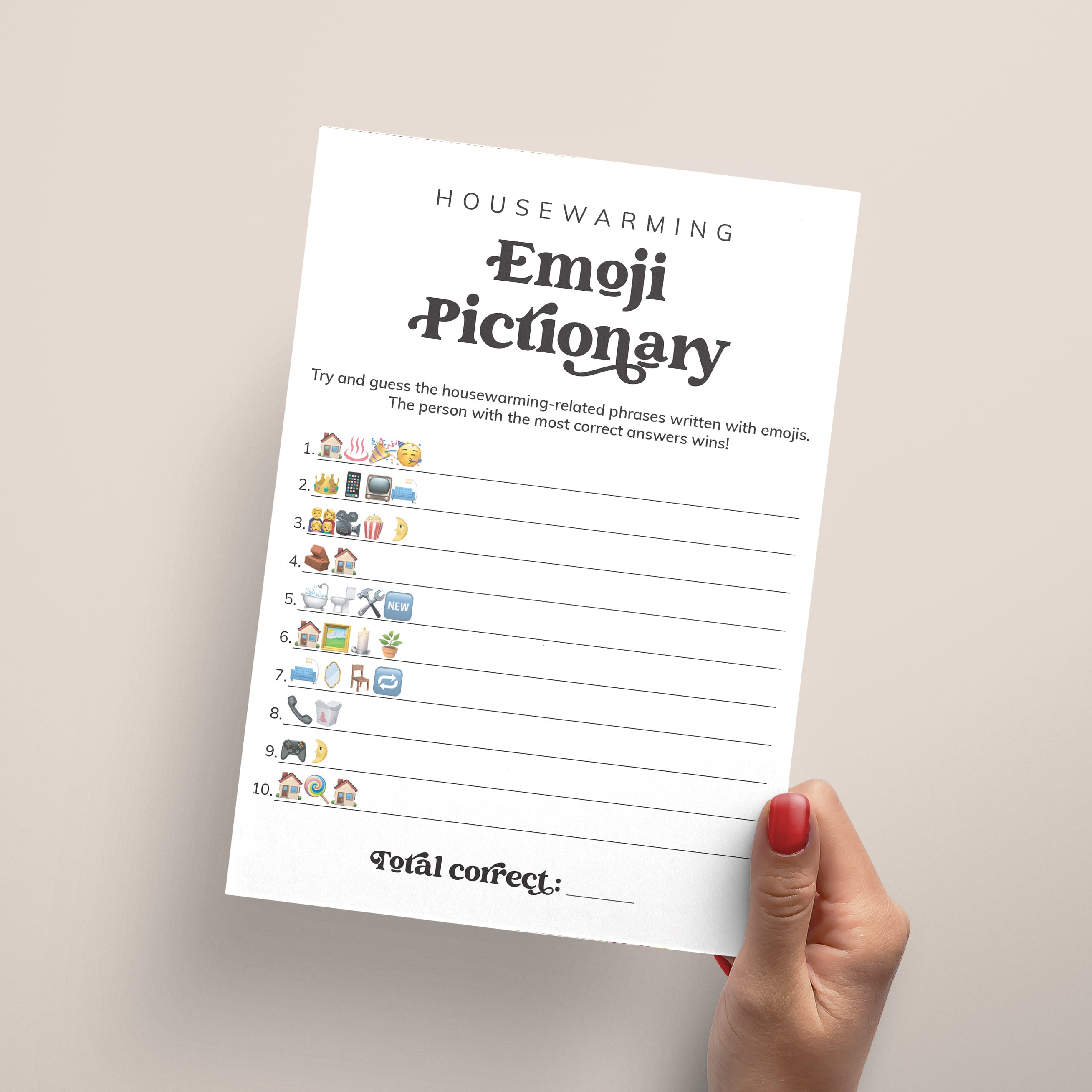 The game is very easy to play: guess the names of the housewarming-related phrases described using emojis we all know. The person with the most correct answers wins. An answer key is included.