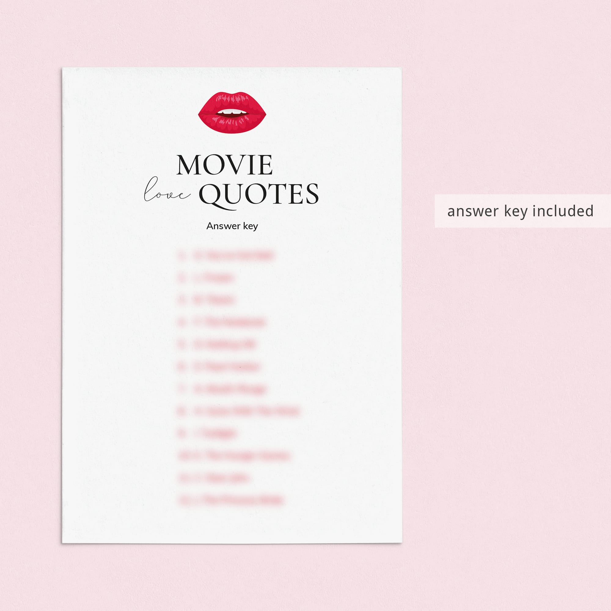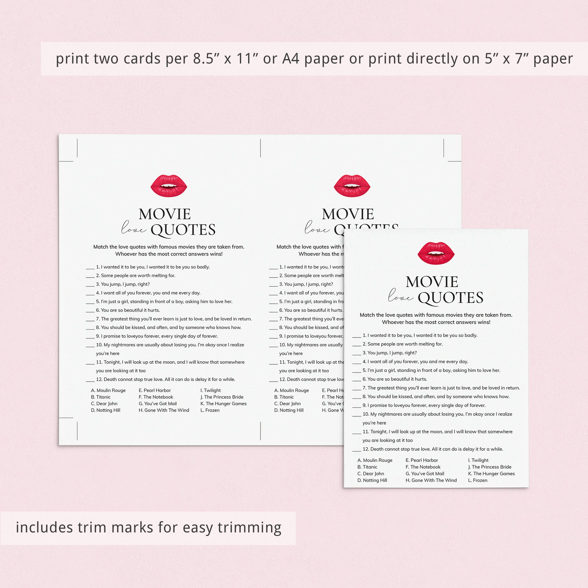 The game is very easy to play. Match the 12 movie quotes with the famous movie they are taken from. The person with the most correct answers wins. Just in case you have trouble figuring out the right answers, an answer key is included.