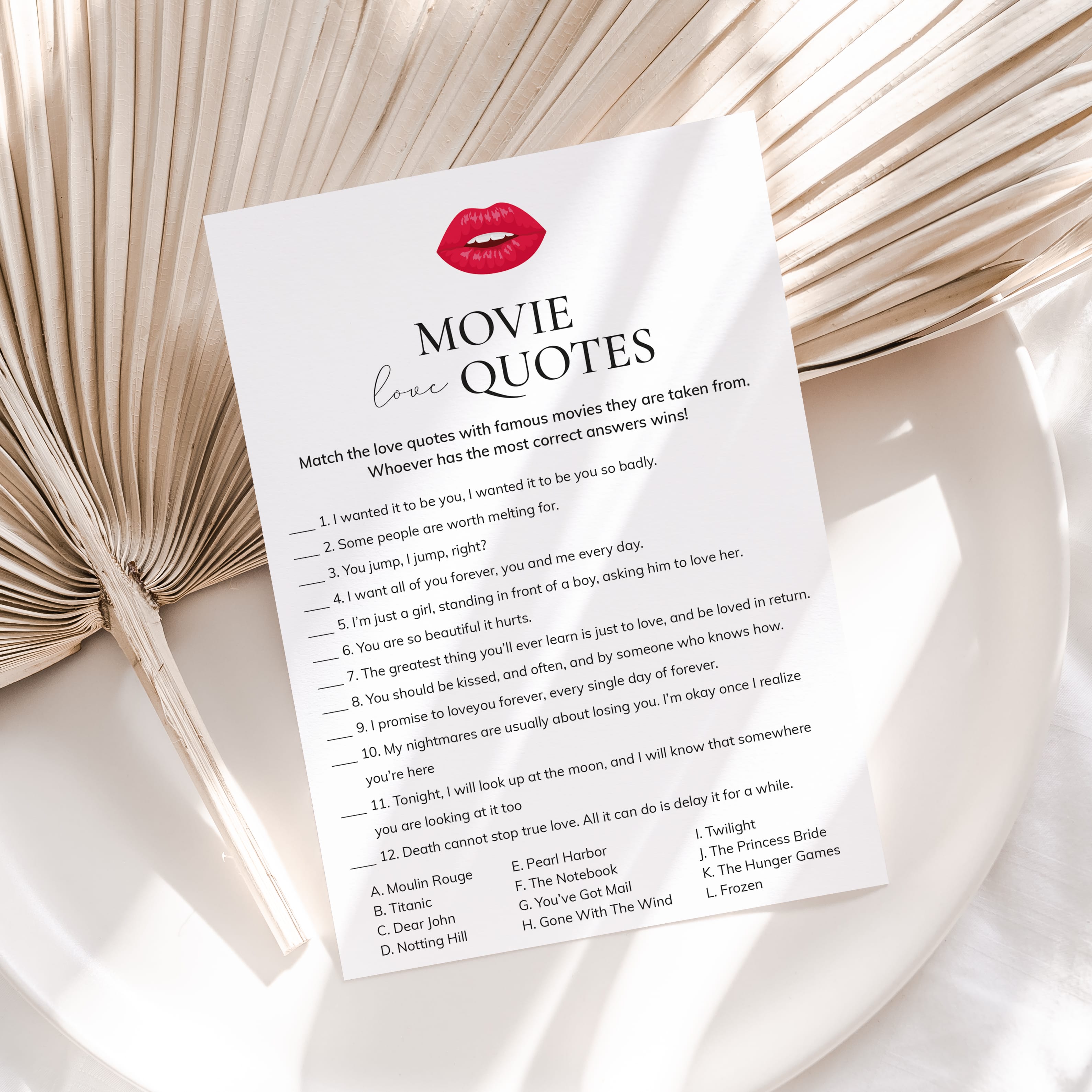 You think you know your romantic movies? This fun Girls Night Movie game will put you to the test. It's the perfect game for romantic movie fans and will sure get the girls at your party interacting, laughing and enjoying the thrill of competition.
