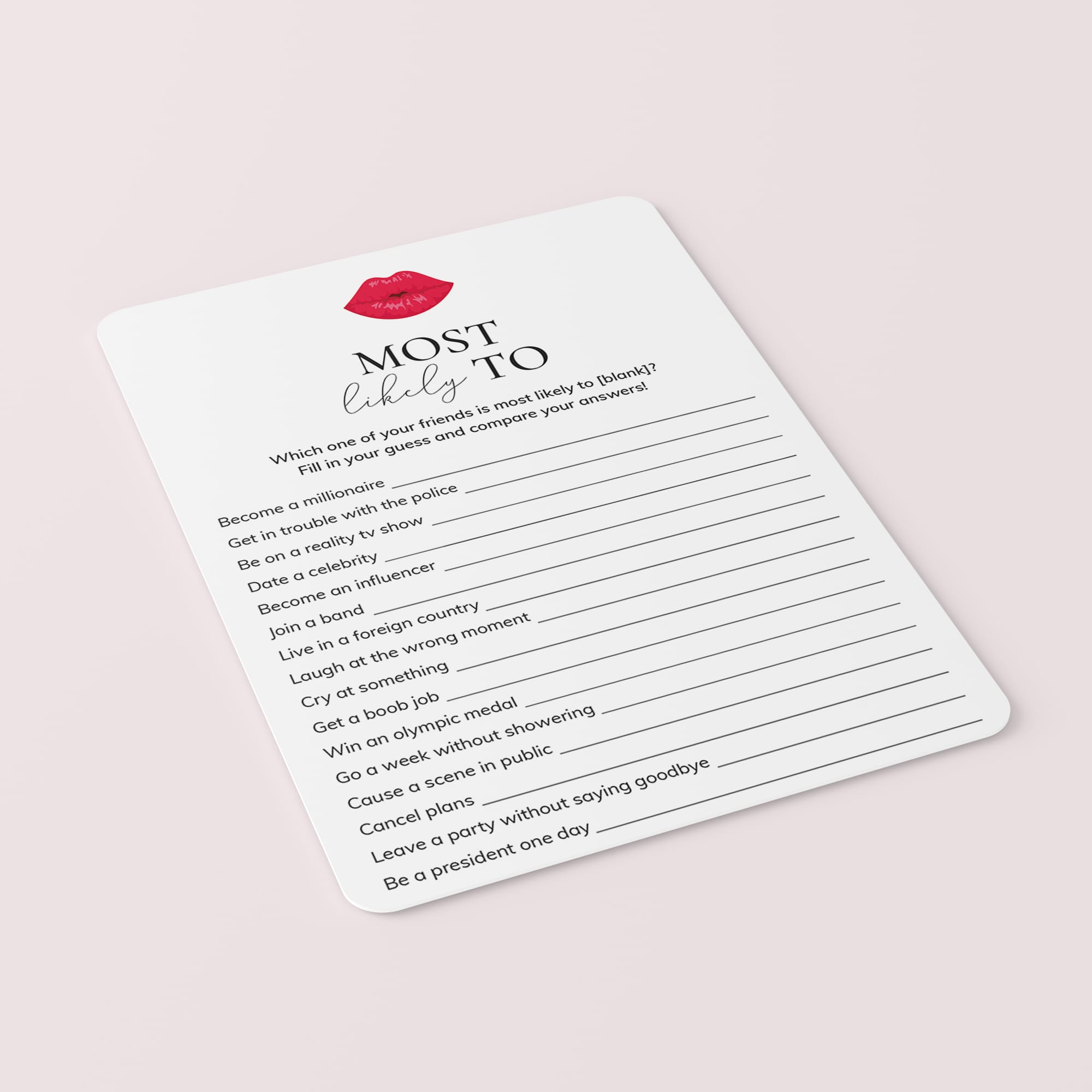 Are you looking for a fun icebreaker game and great conversation starter for your Ladies Night? Play Most Likely To. This game has 16 Most Likely To questions for girls that will get everyone talking and laughing. Who is most likely to become an influencer? And who is most likely to date a celebrity? You will get to know your friends at some new level.