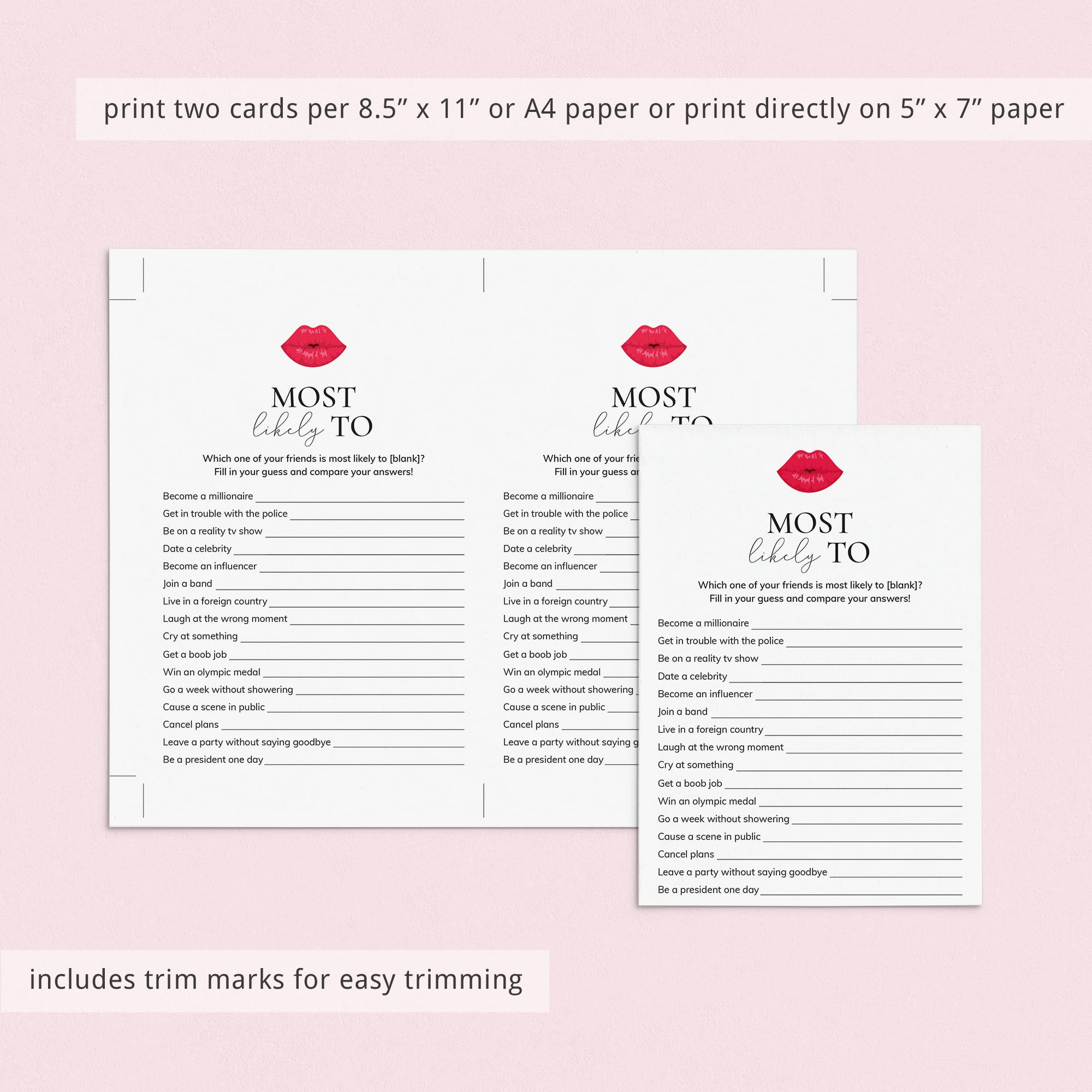 • 1 High resolution PDF sized 8.5" x 11" with trim marks for twice the 5" x 7" design to print