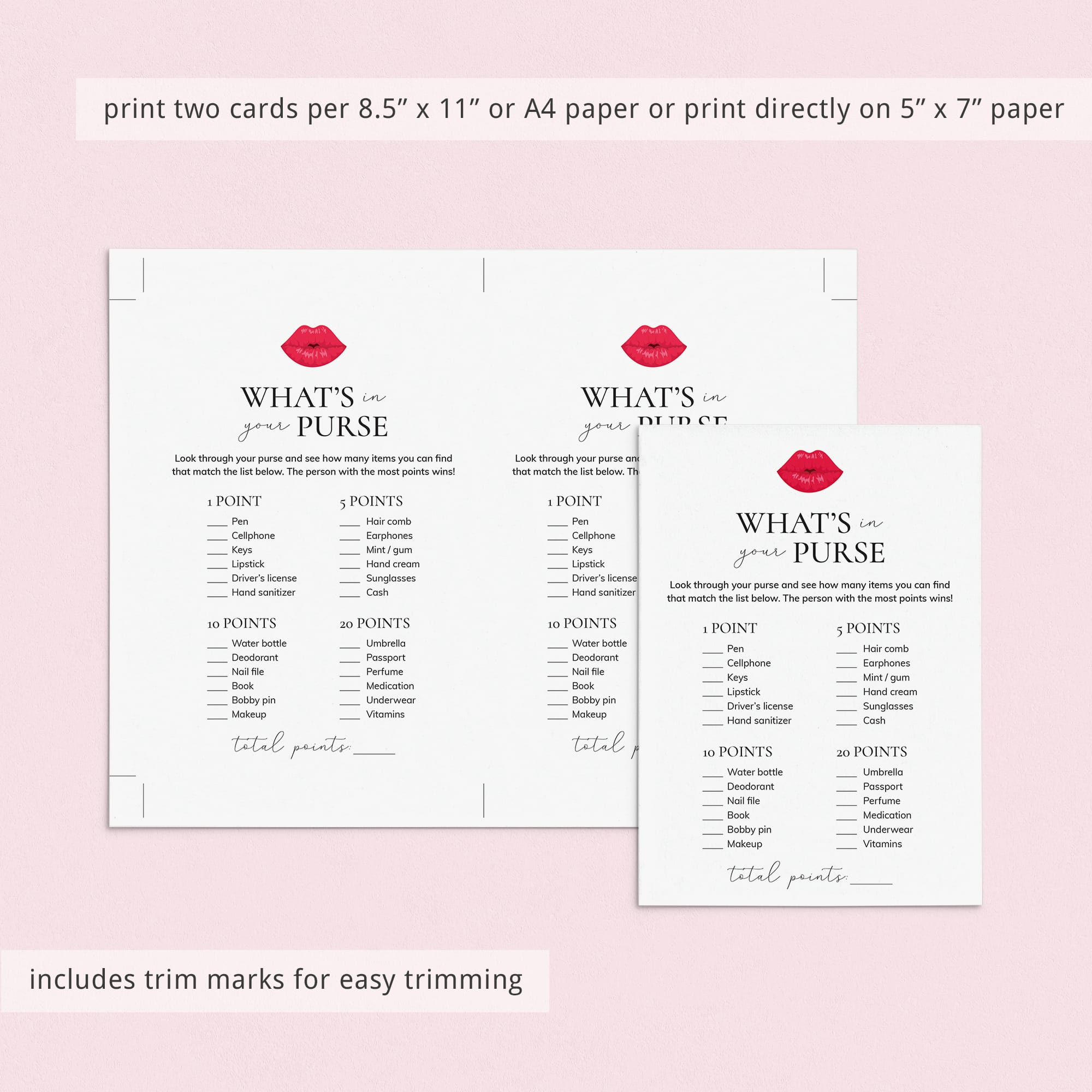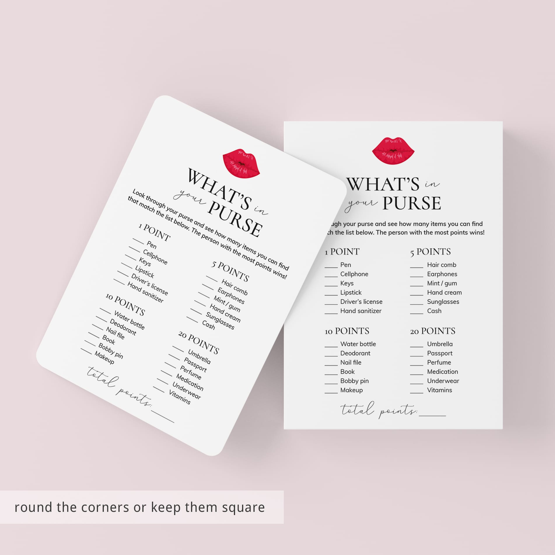 The game is very easy to play. Simply pass the game cards around during your girls night where your friends will have fun going through their purse and checking off items what they have from the list. They gain points for each item on the list they they have in their purse. The player with the most points wins!