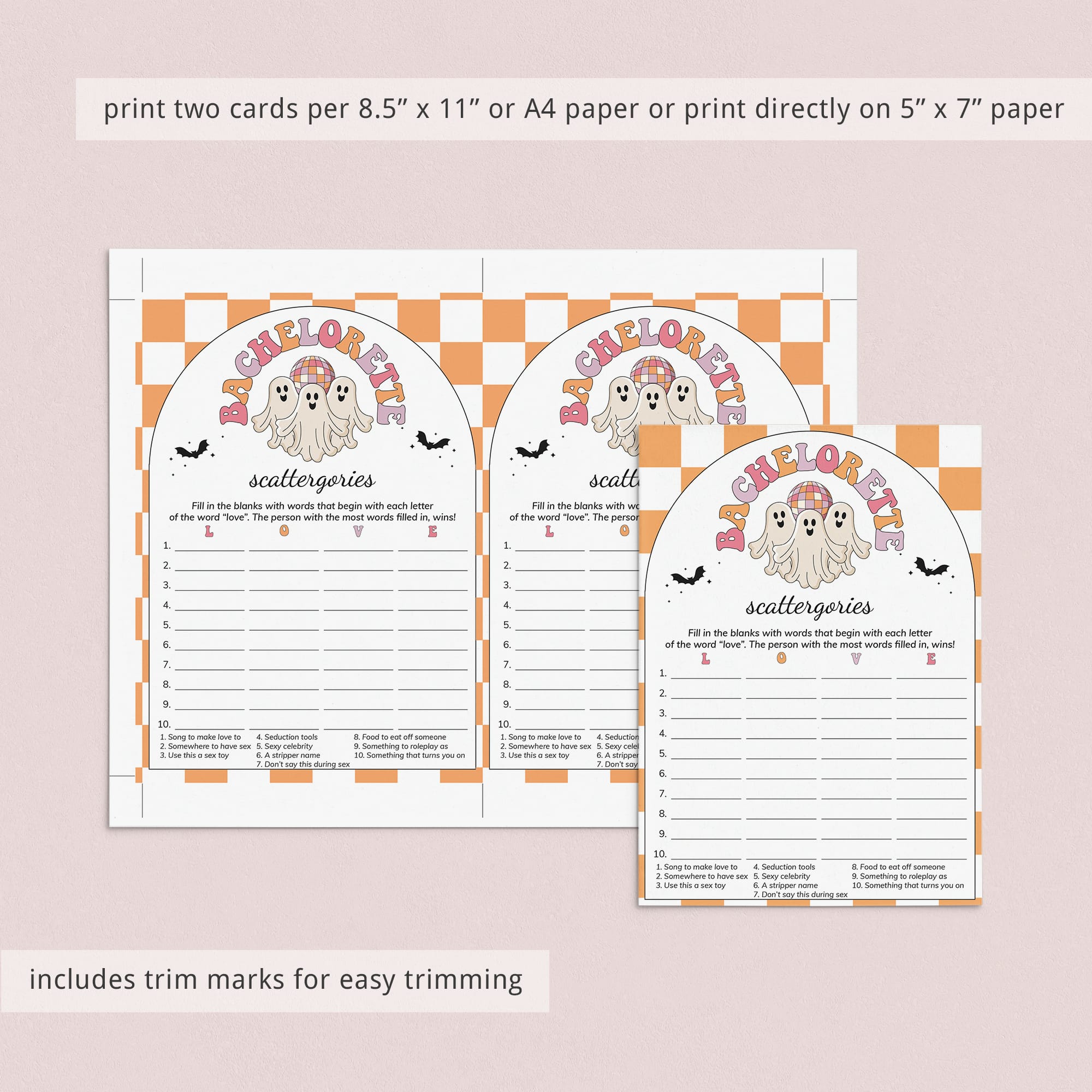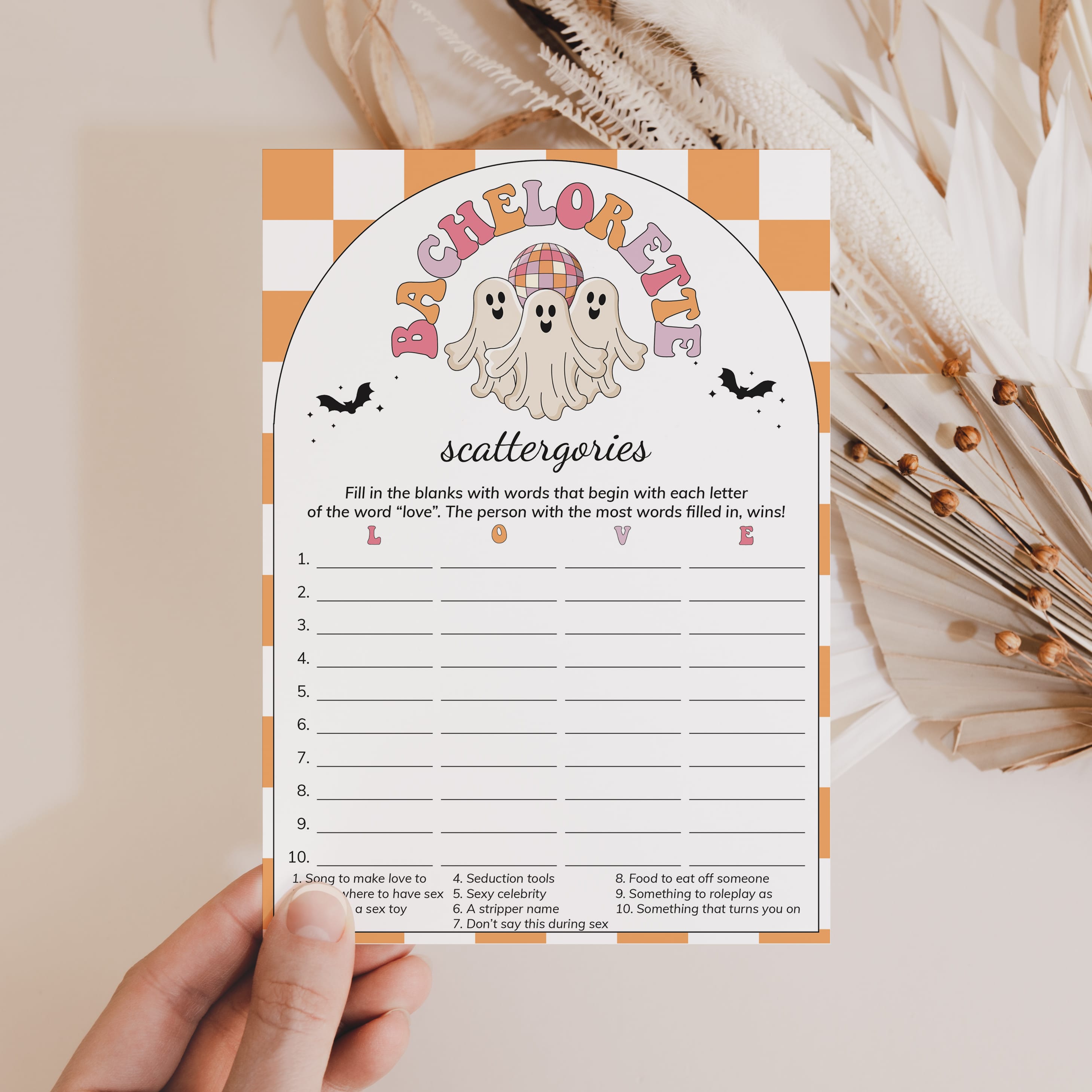 Retro Spooky Bachelorette Scattergories Game Card Printable