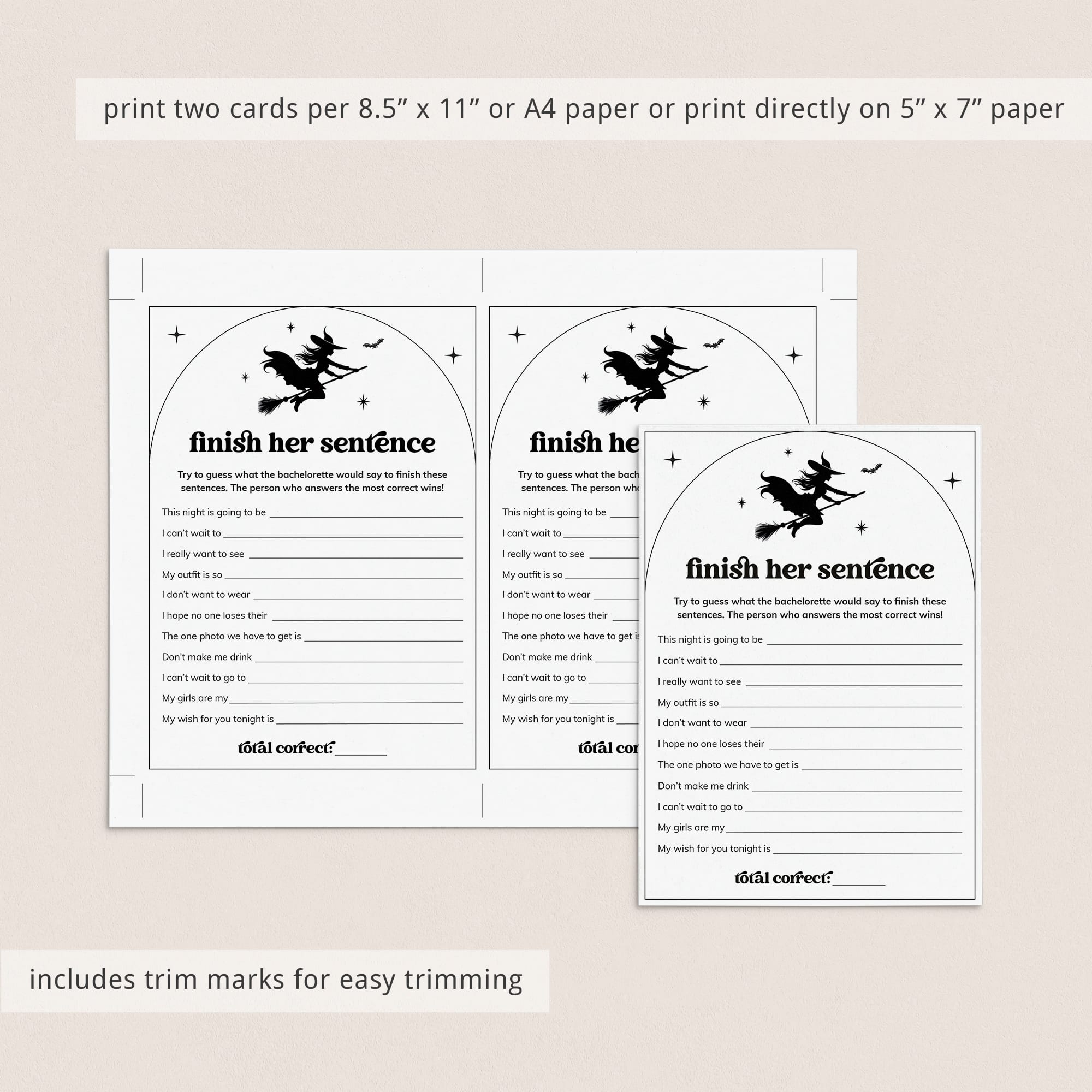 Featuring 8 ready-to-play games, this bundle is packed with witch vibes, coven fun, and a touch of sexy sorcery. Just download, print, and make your witchy bachelorette party one for the spell books!