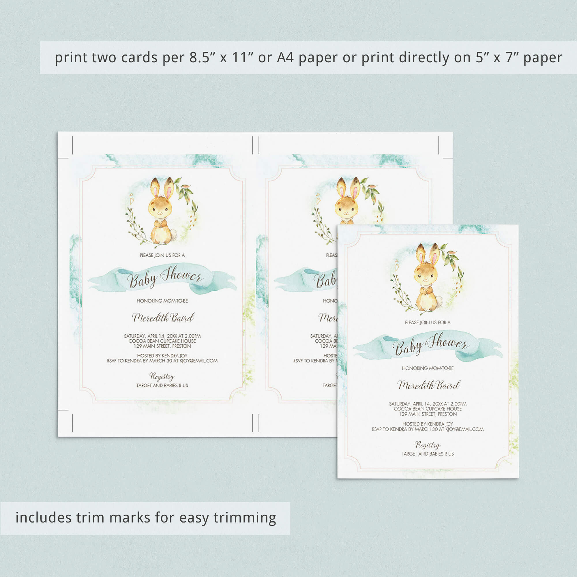 • 1 Editable PDF sized 8.5” x 11” with trim marks for twice the 5” x 7” design