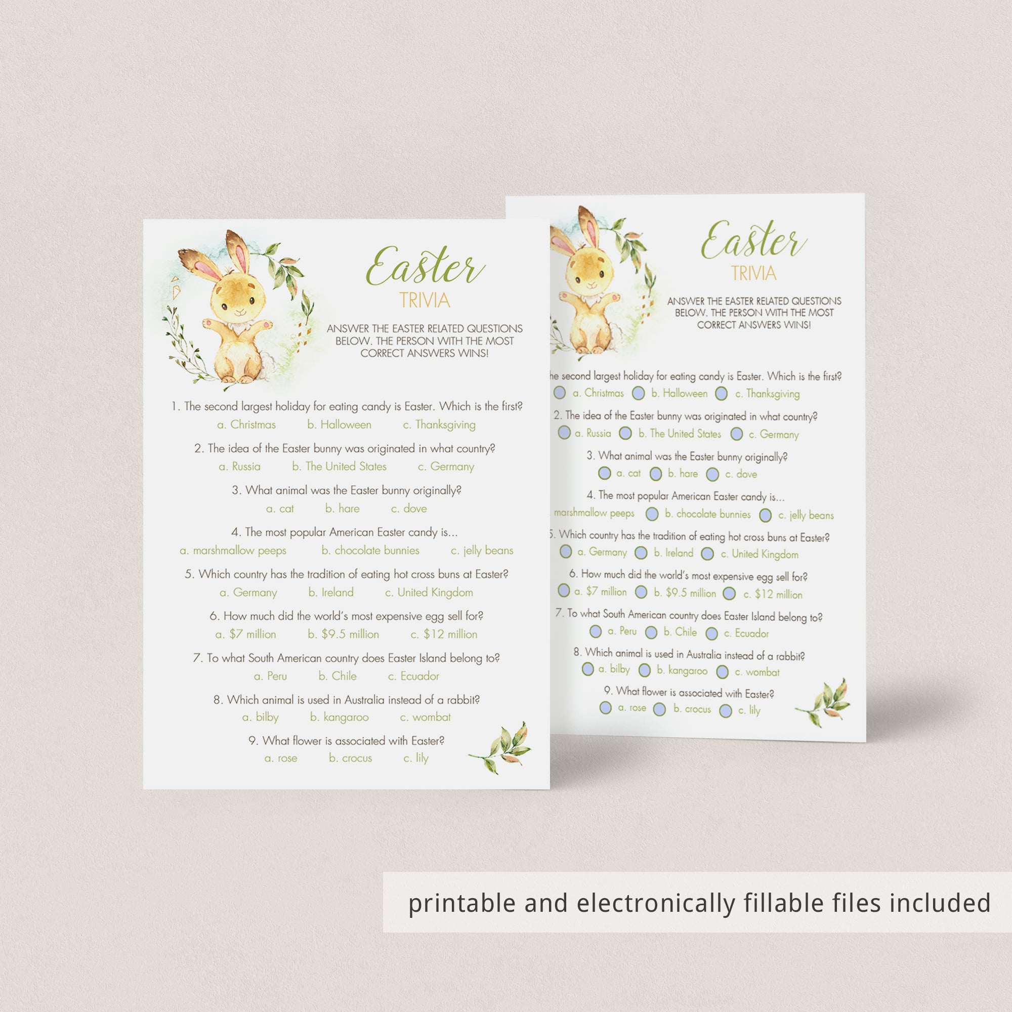 Printable and electronically fillable templates are included, so that you can play this Easter Quiz in-person or over a video call app like Zoom or Teams.