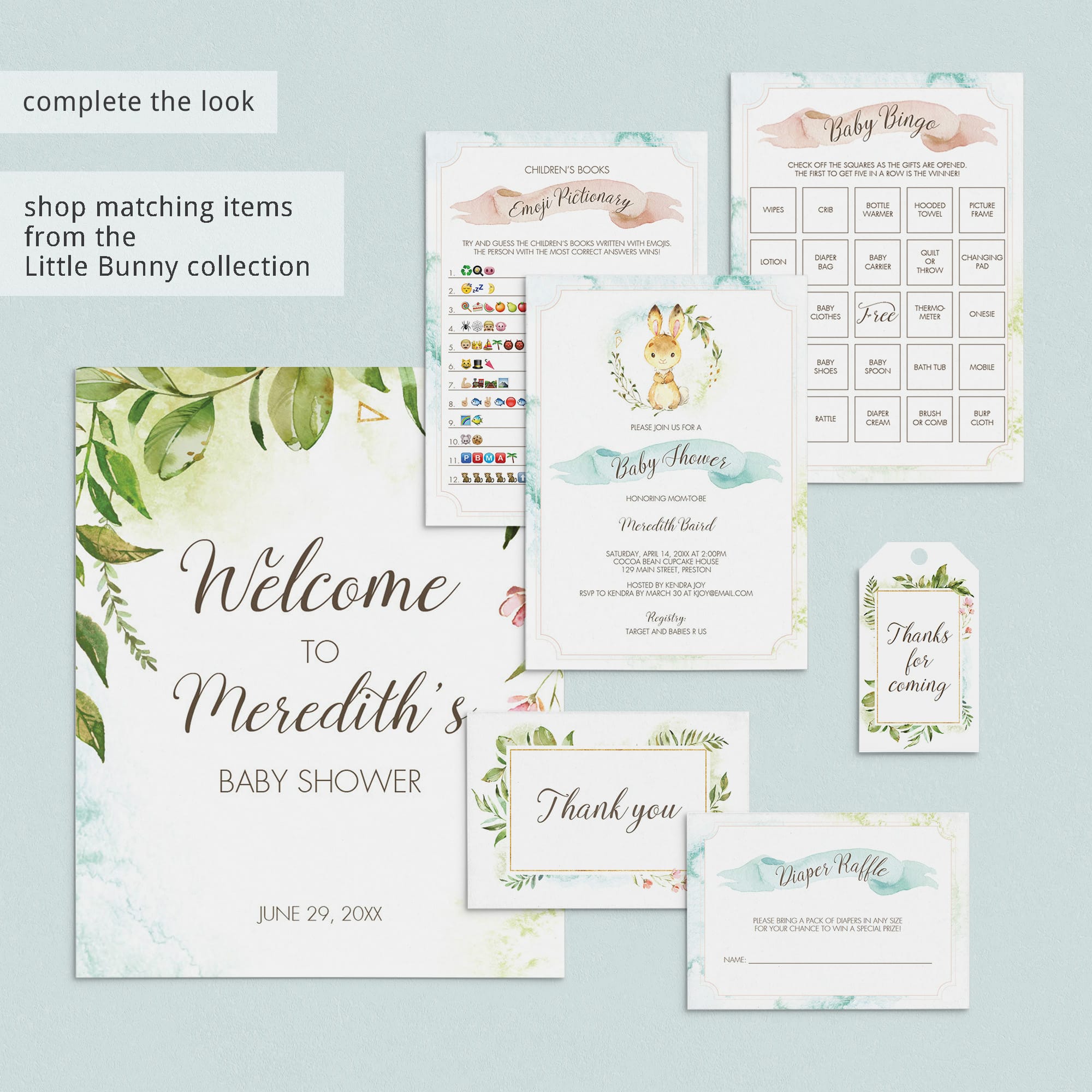 What better way to celebrate the arrival of a spring baby boy then to host a bunny themed baby shower? We are absolutely dying over the darling little rabbit on this woodland themed baby shower invitation.