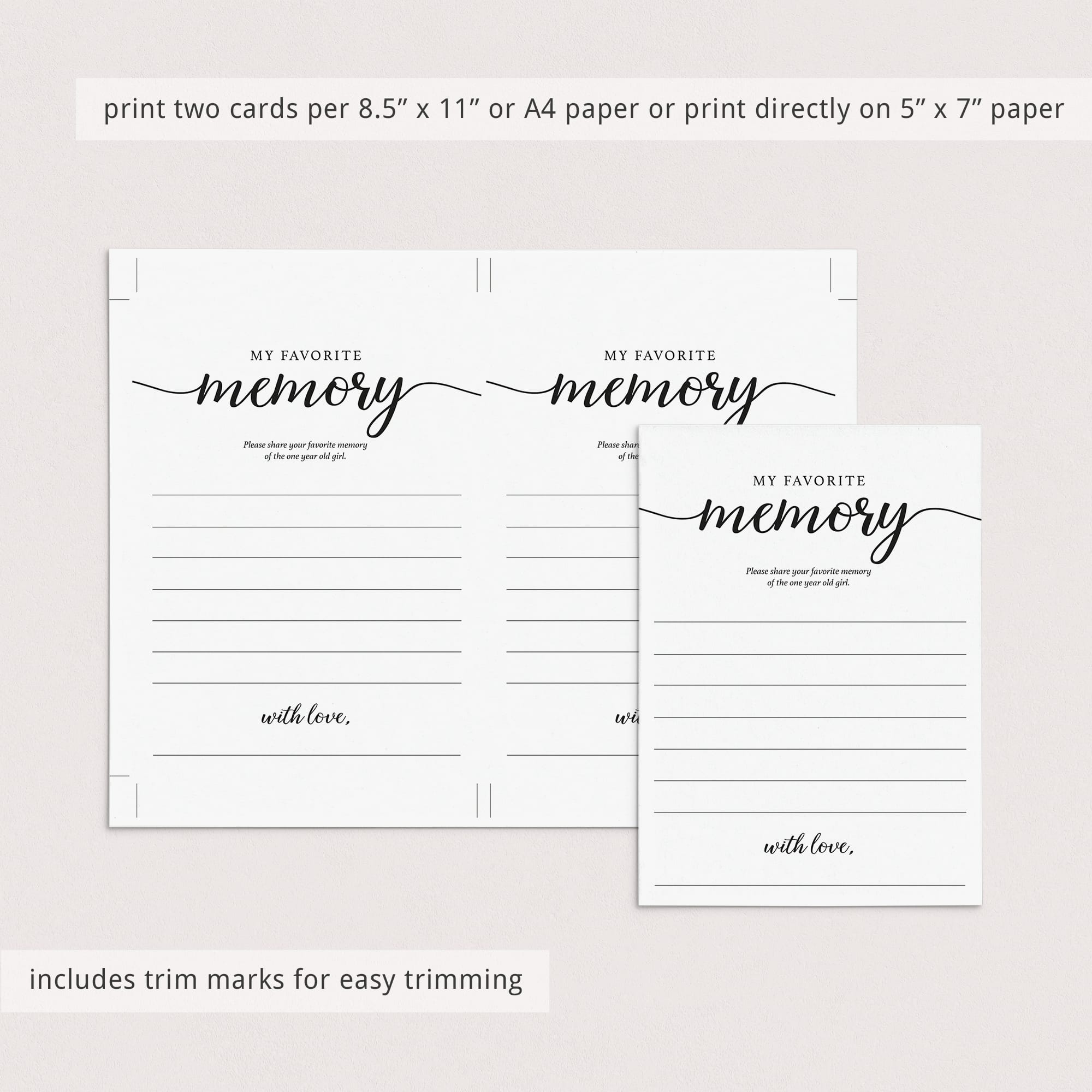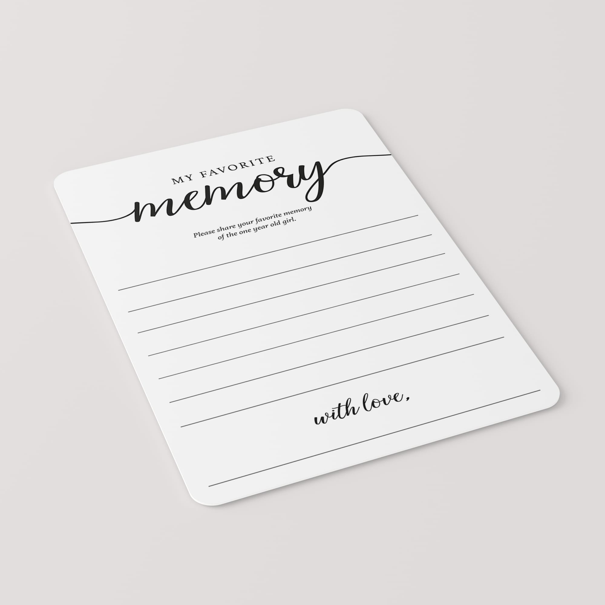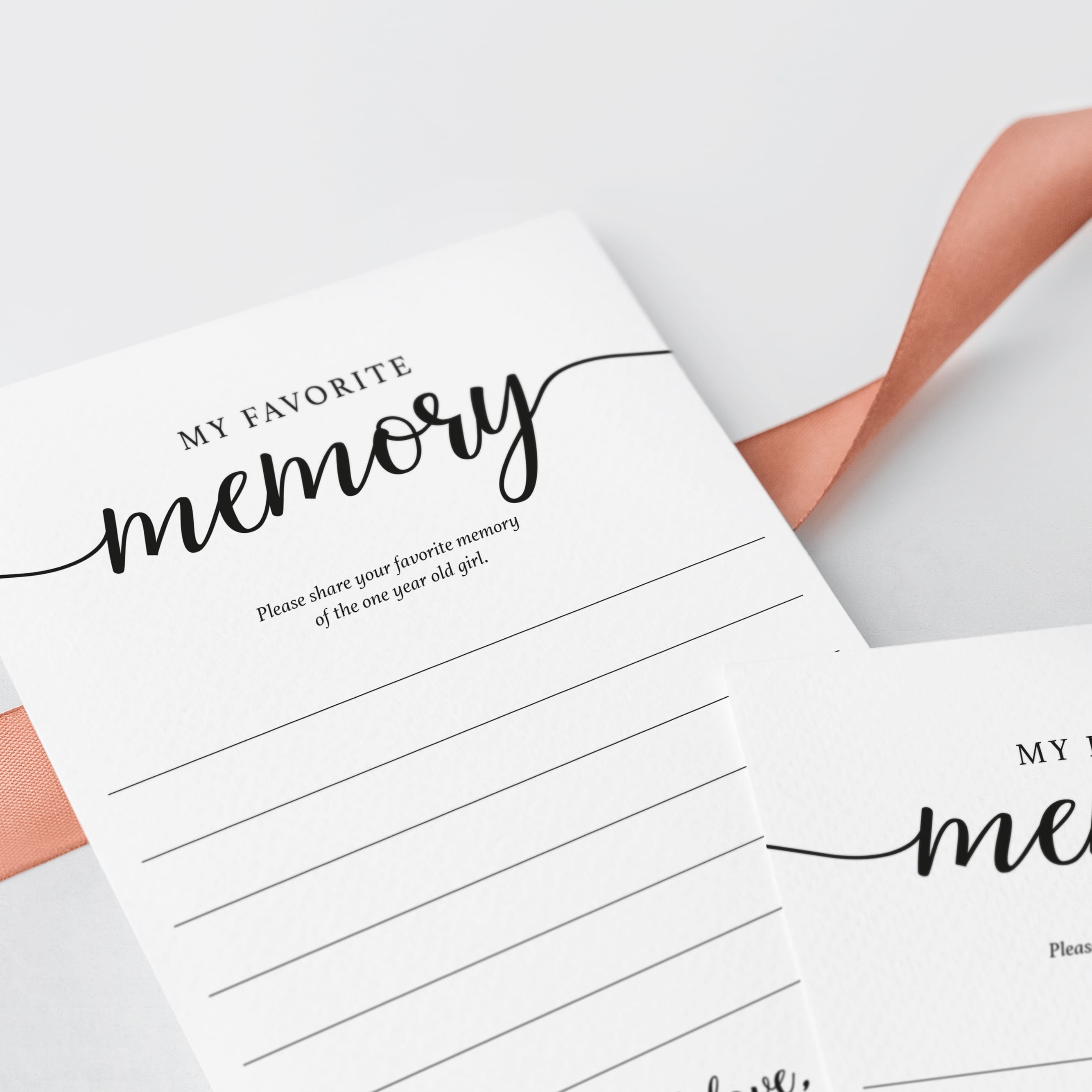 Are you looking for a memorable ice breaker game and keepsake for your girl's first birthday party? Have your guests share their Favorite Memory of The One Year Old Girl with these calligraphy birthday memory cards. It's the perfect addition to any first birthday party and it's sure to be a hit!