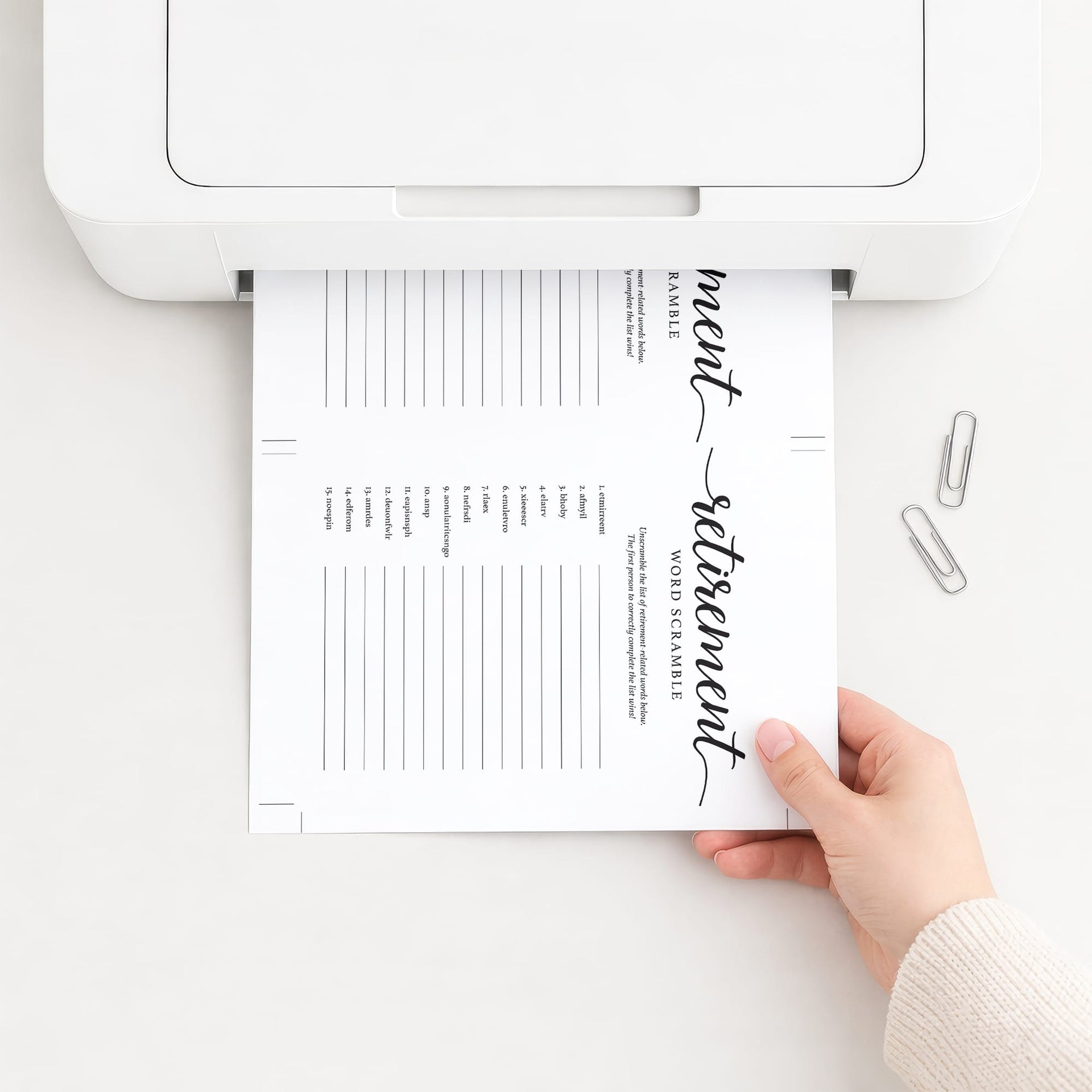 Play one of the most popular party games with this simple, yet elegant, Retirement Scrambled Words game. The black and white game with calligraphy script will fit any retirement party theme. This game will create a fun and enjoyable moment for all of your guests.