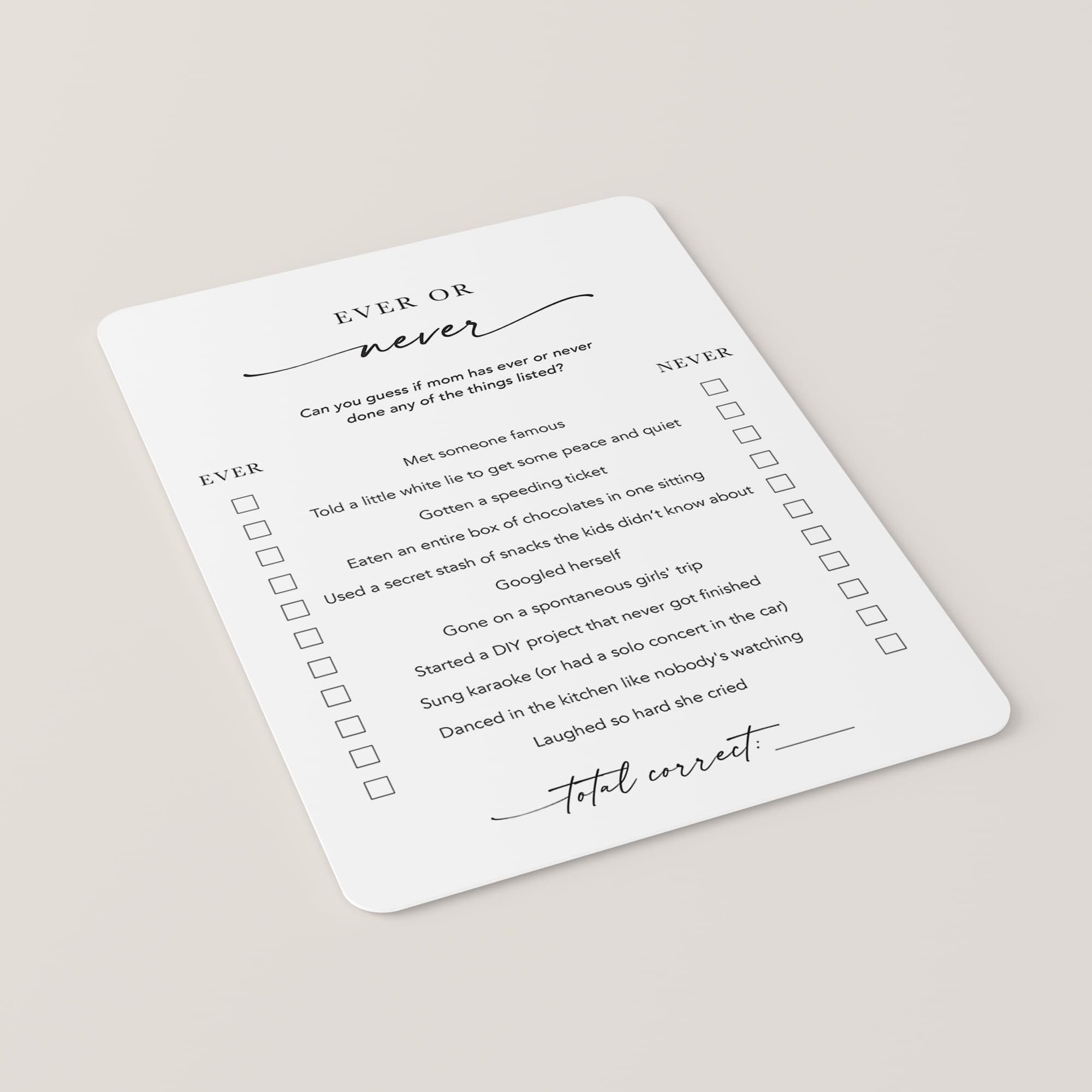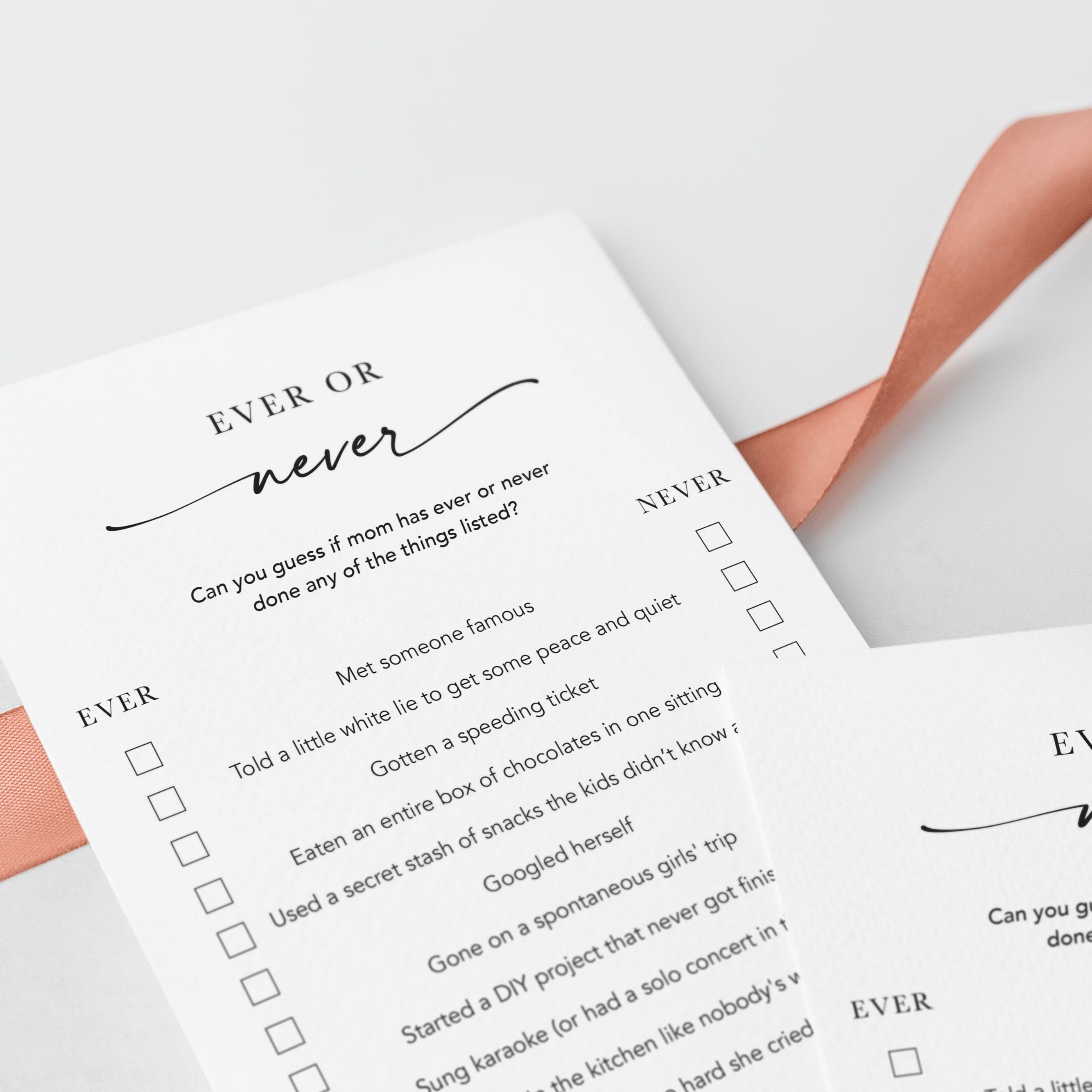 Have mom fill out the game card as an answer key before the celebration starts. Then compare her responses to what your family and friends guessed. The player with the most correct wins bragging rights.