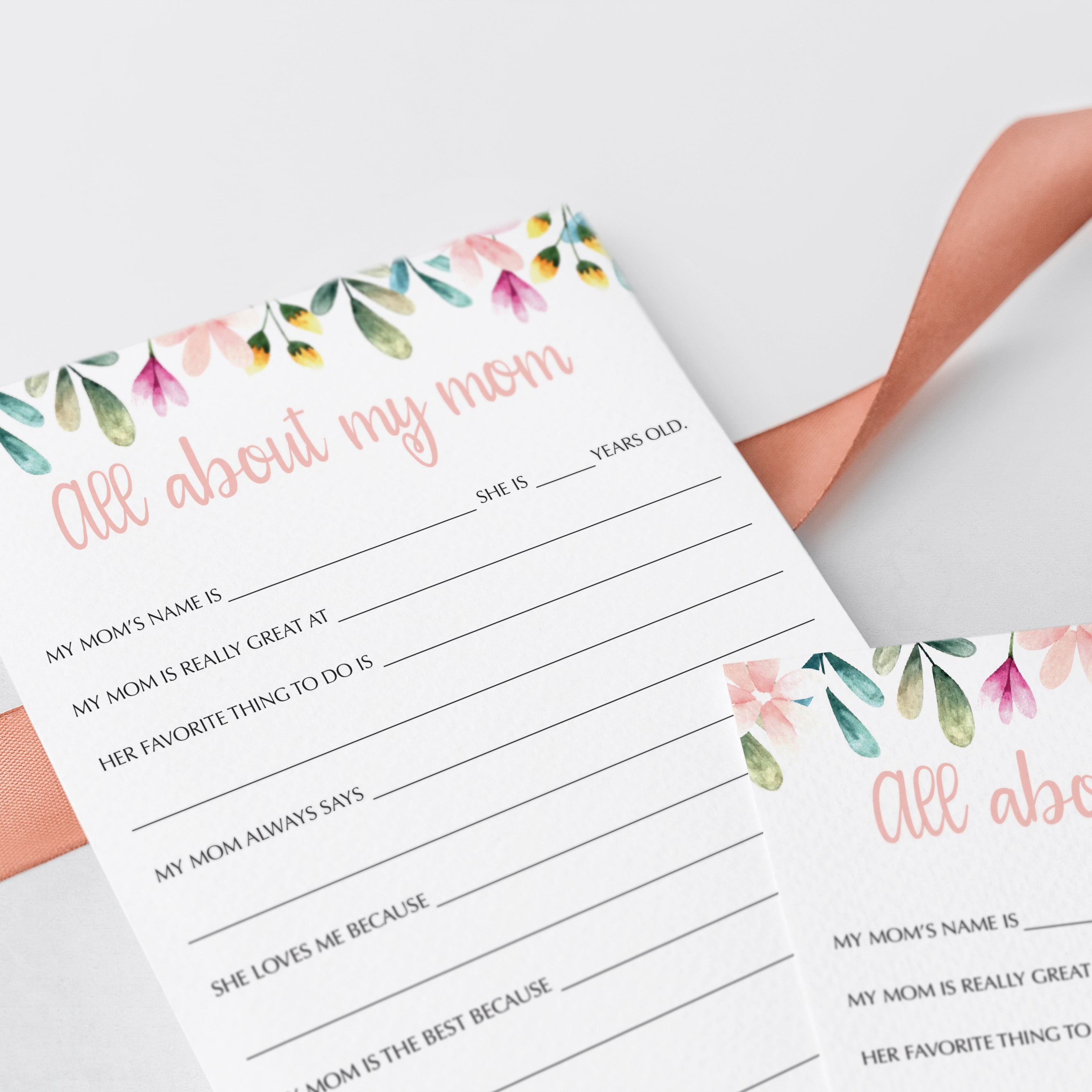 This Mother's Day, create a meaningful keepsake for your mom with this gorgeous watercolor floral All About My Mom Mother's Day card.
