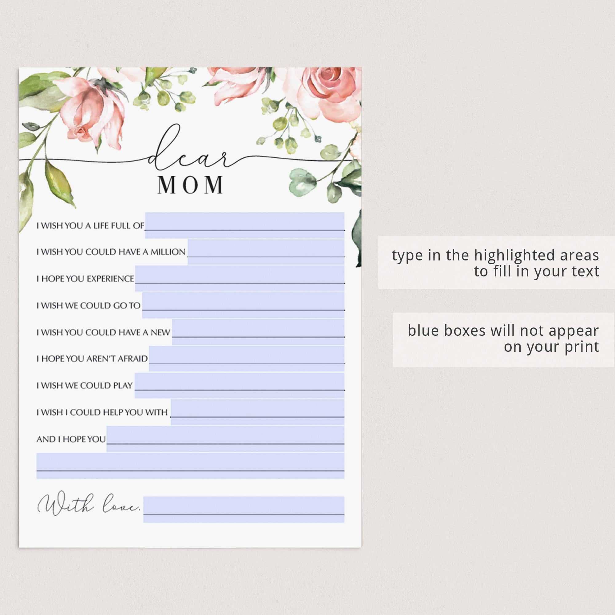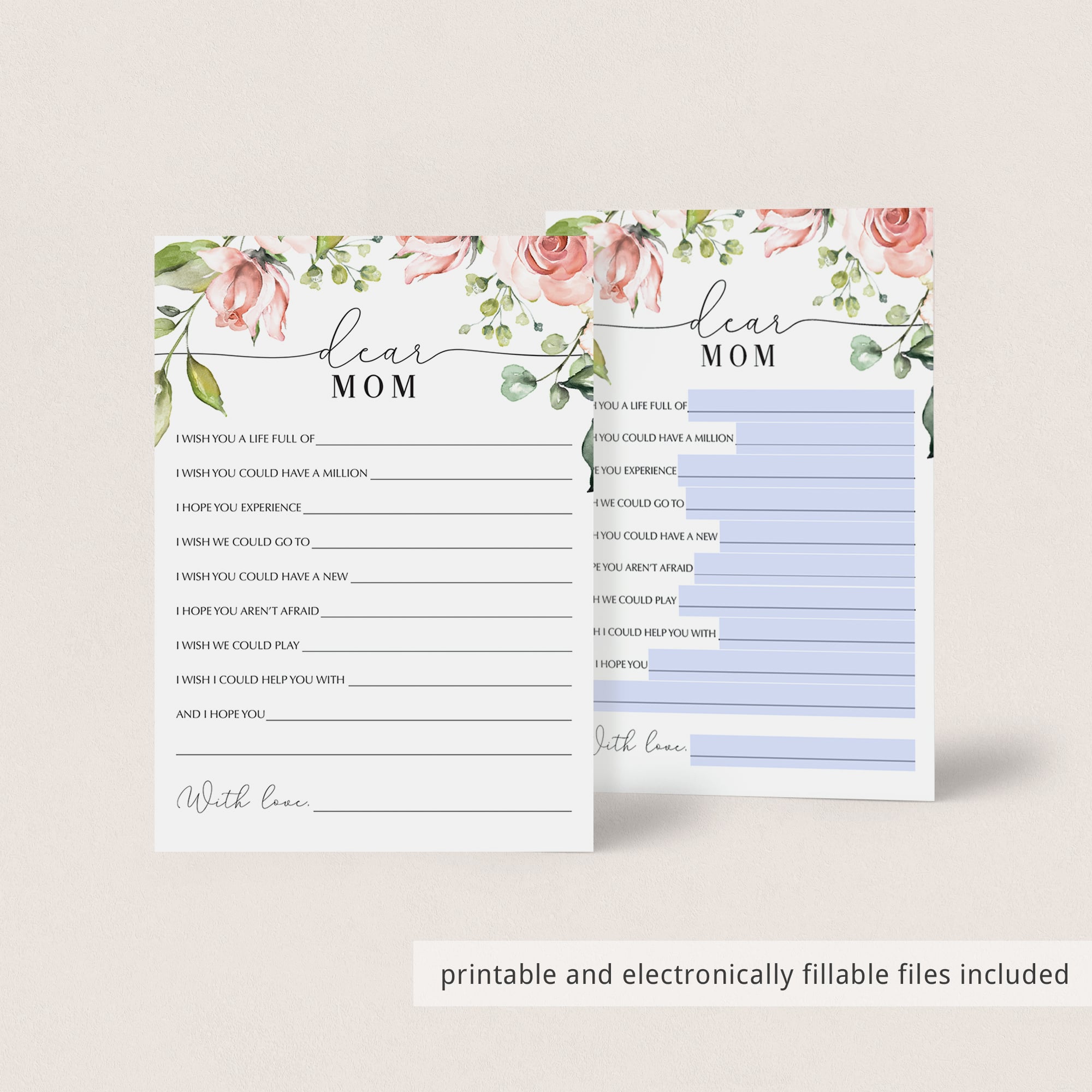 This Mother's Day, create a meaningful keepsake for your mother and write her a personal letter with heartfelt wishes with this printable and virtual Dear Mom Mother's Day template with gorgeous blush flowers.