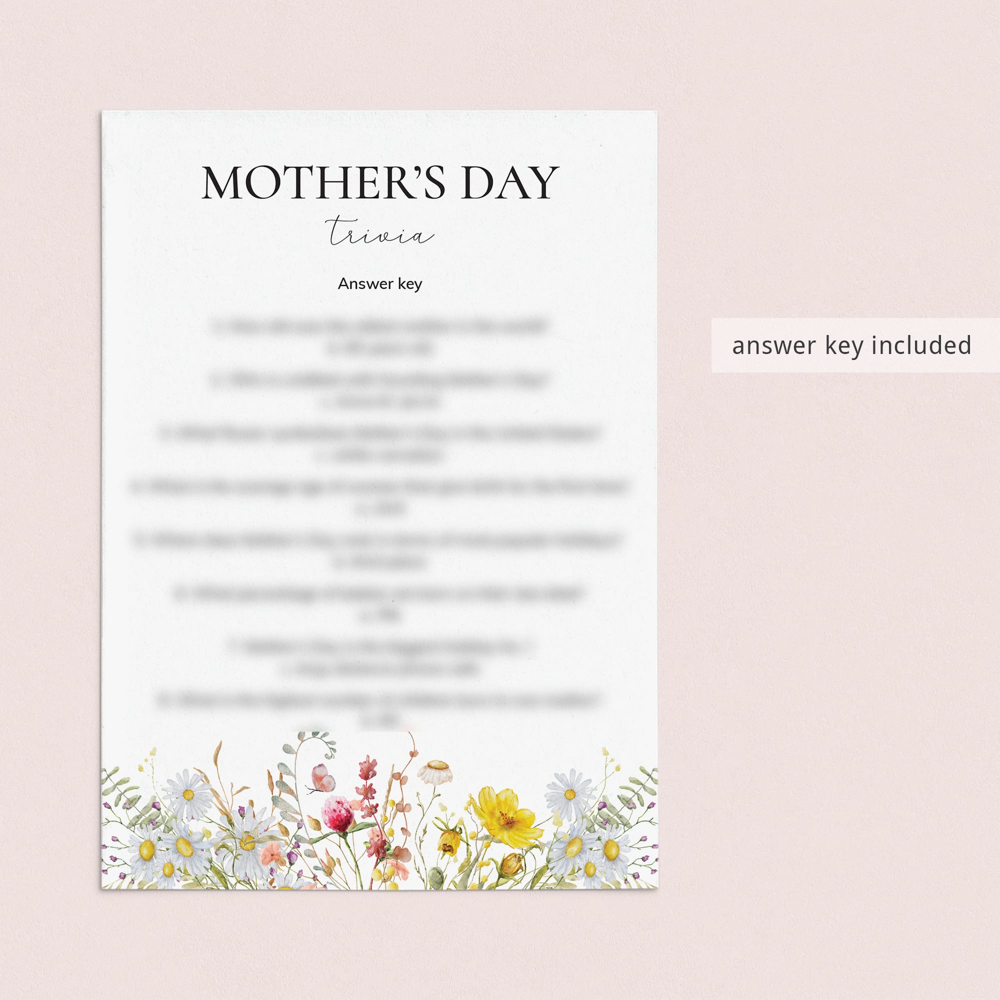 Are you looking for fun Mother's Day game? Play Mother's Day Trivia with this gorgeous floral card game with 8 multiple choice questions. You will learn some fun Mother's Day facts. Just in case you have trouble figuring out the answers, an answer key is included.