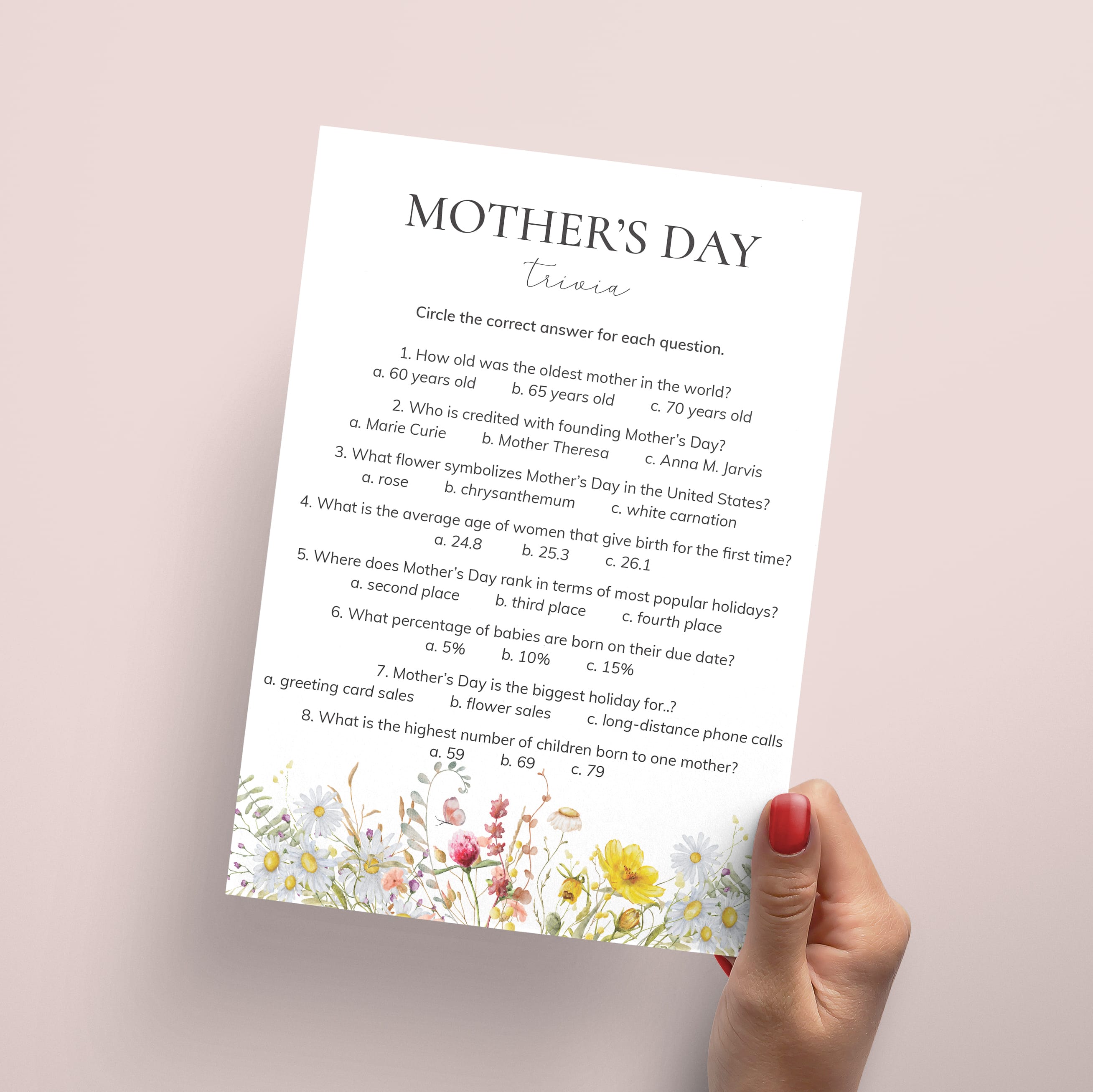 Whether you’re celebrating Mother’s Day with a large group of extended family and friends, planning a Mother's Day brunch for some wonderful woman or simply staying home for some quiet, quality time with your mom and siblings, this Mother’s Day Quiz is a great way to keep everyone entertained.