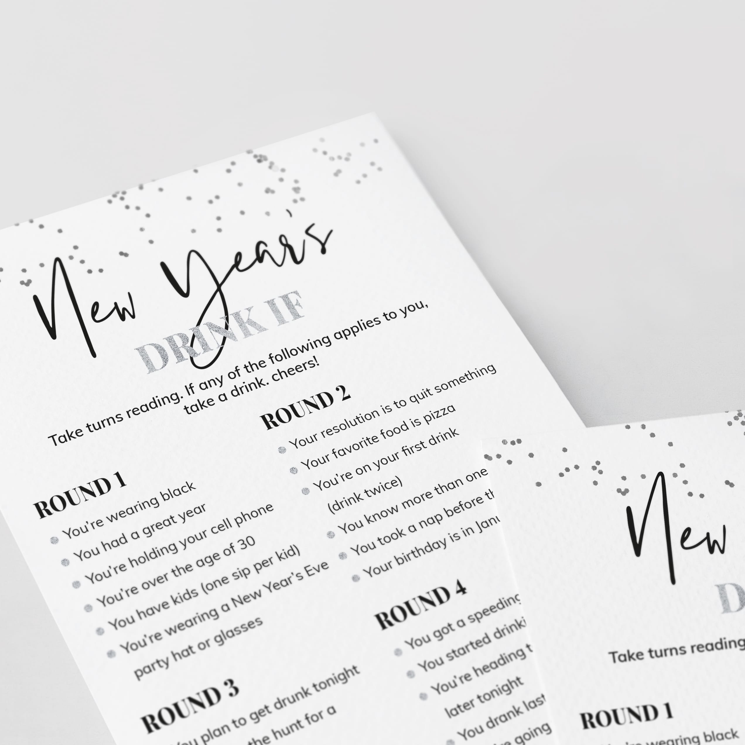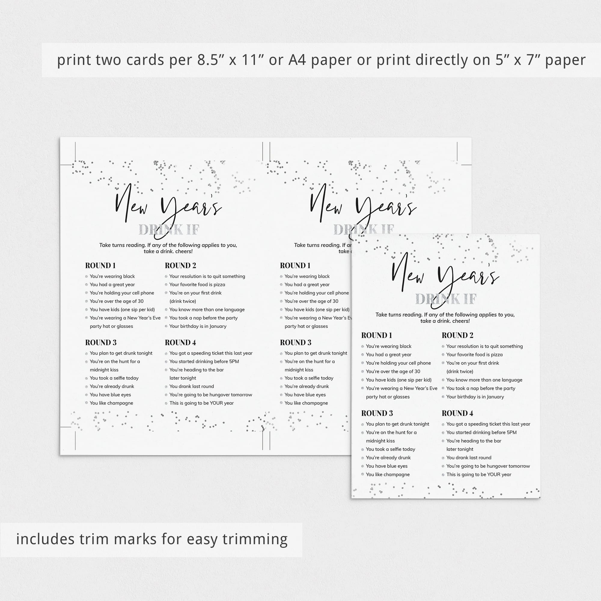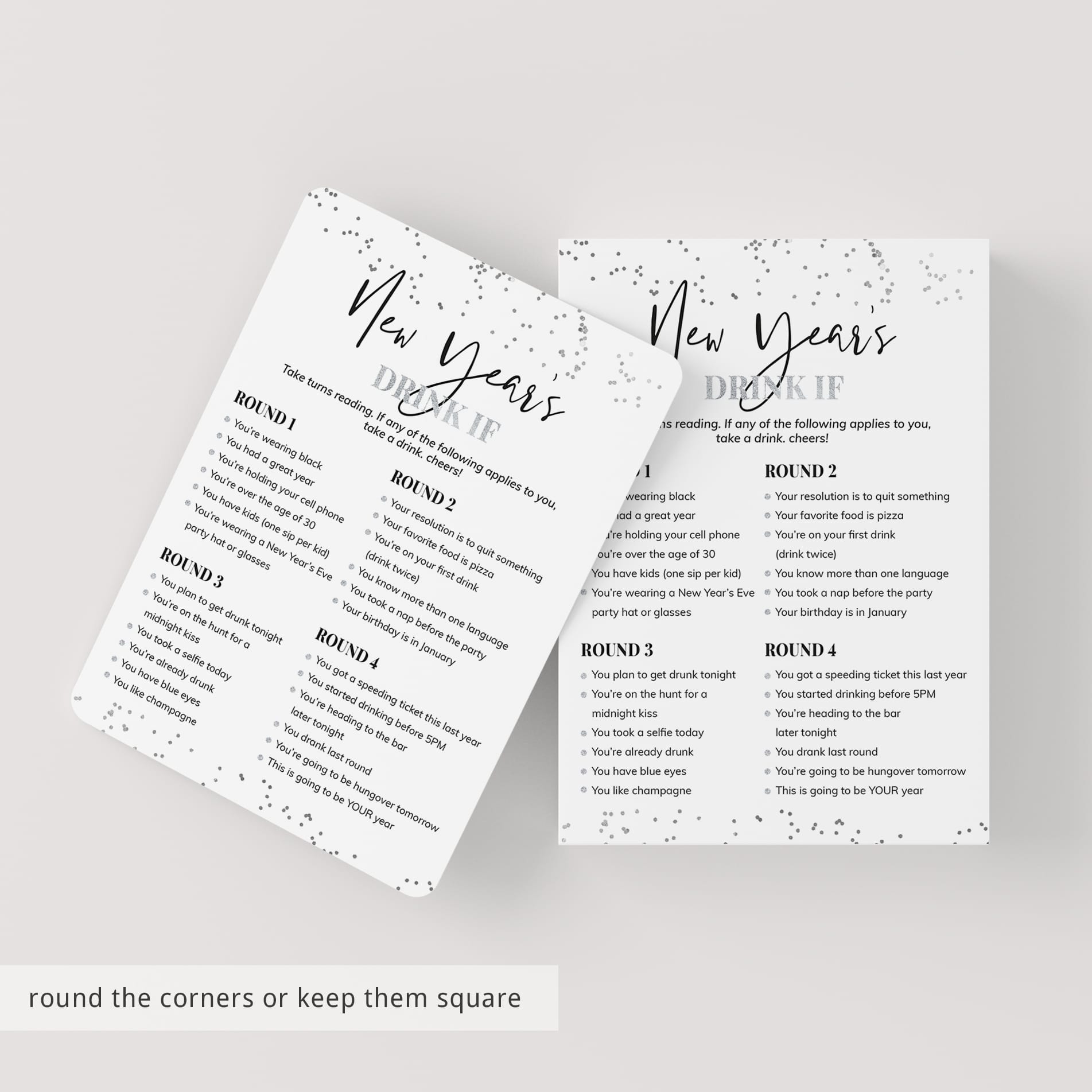 This glittery silver New Year's drinking game card is an instant download. After purchase you will receive a download link immediately on screen. Also within minutes of your order and payment, an e-mail will be sent to you with a link for your download.