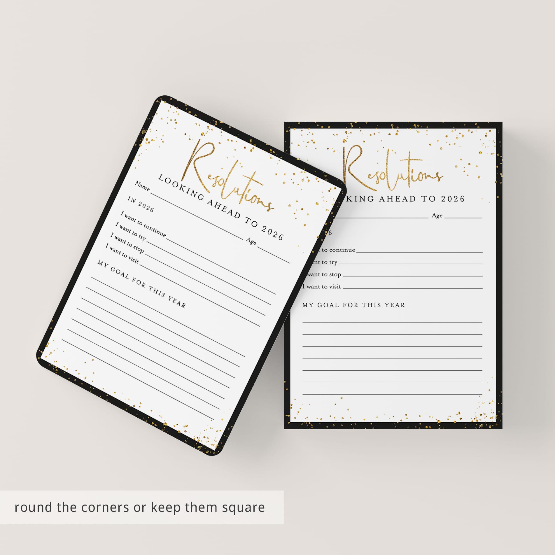 Write down your goals and resolutions for 2026 with this black and gold New Year's Resolutions list. The sparkling design will definitely get you excited for the coming year. It's a great activity for families to do together.