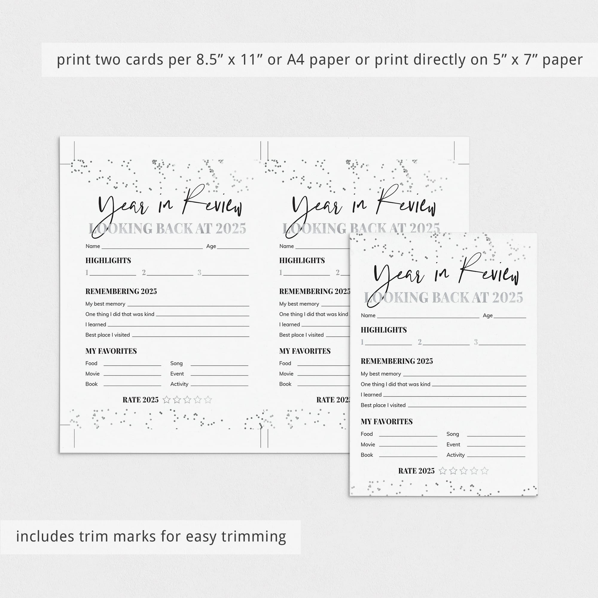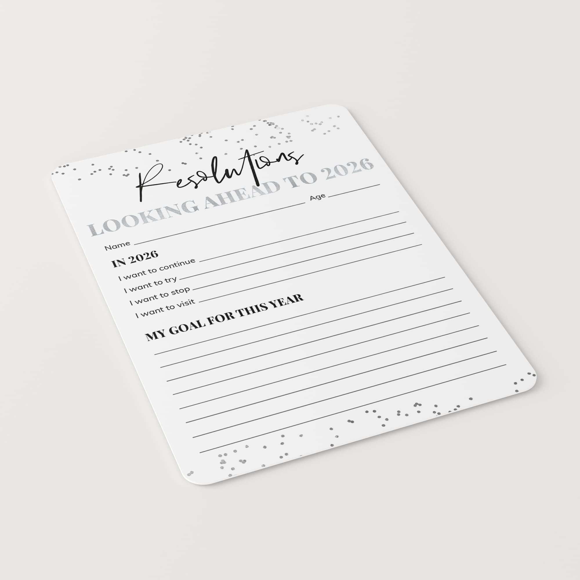 Take a look back at 2025 and look ahead to 2026 with these glittery New Years Resolution Cards with silver confetti.