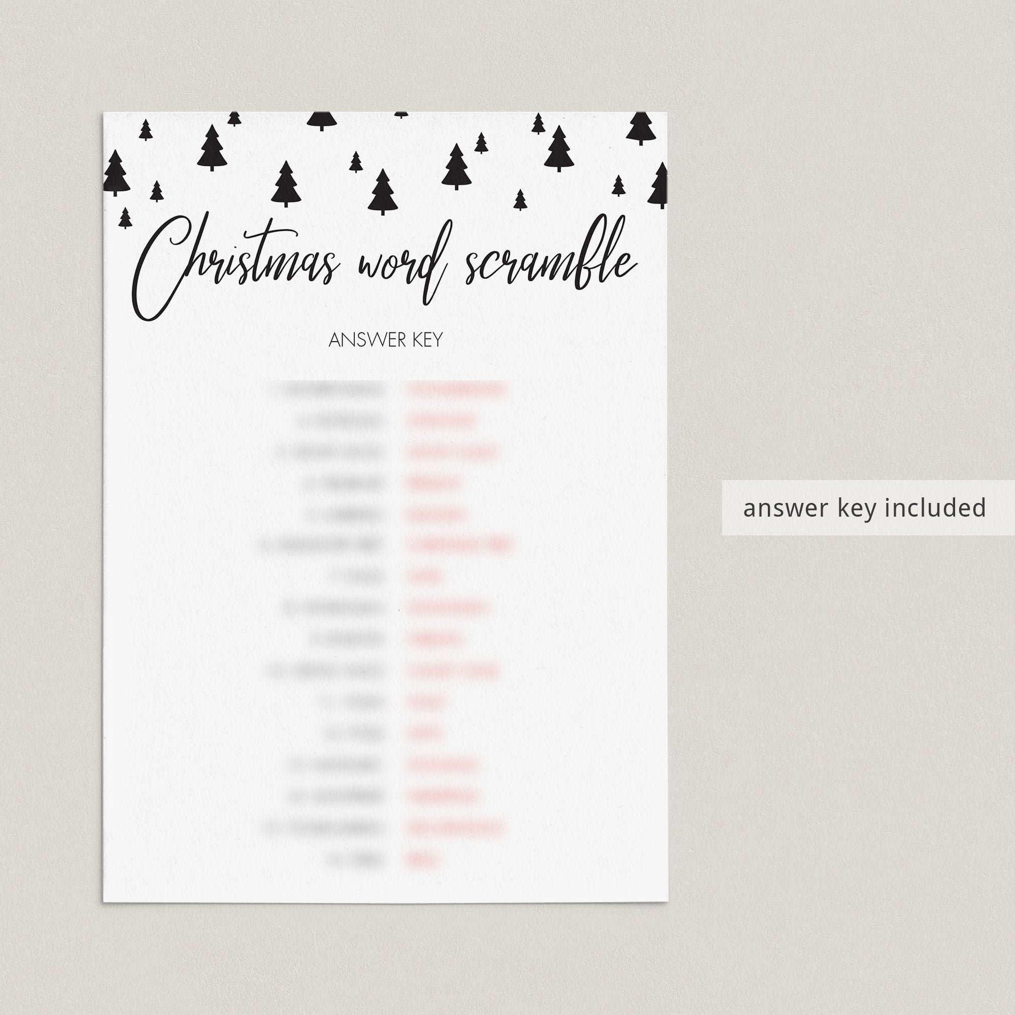 This printable Christmas game for kids is a ton of fun for kids of all ages! Have everyone try to unscramble the Christmas related words. Just in case you have trouble figuring out the scrambled words, an answer key is included.