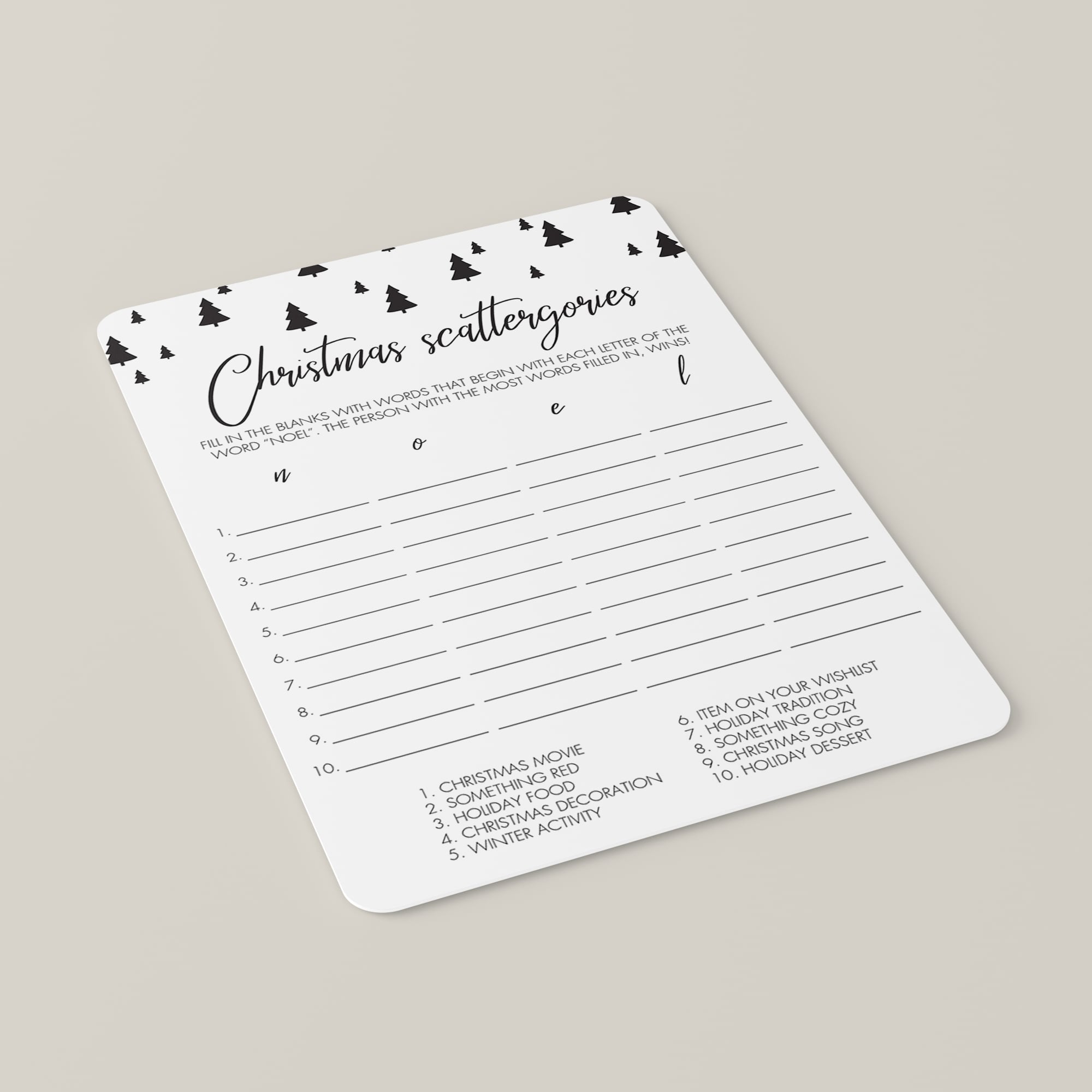 This minimal Xmas Scattergories game is a fun holiday activity for family get-togethers, Christmas parties at the office and for older kids at school.