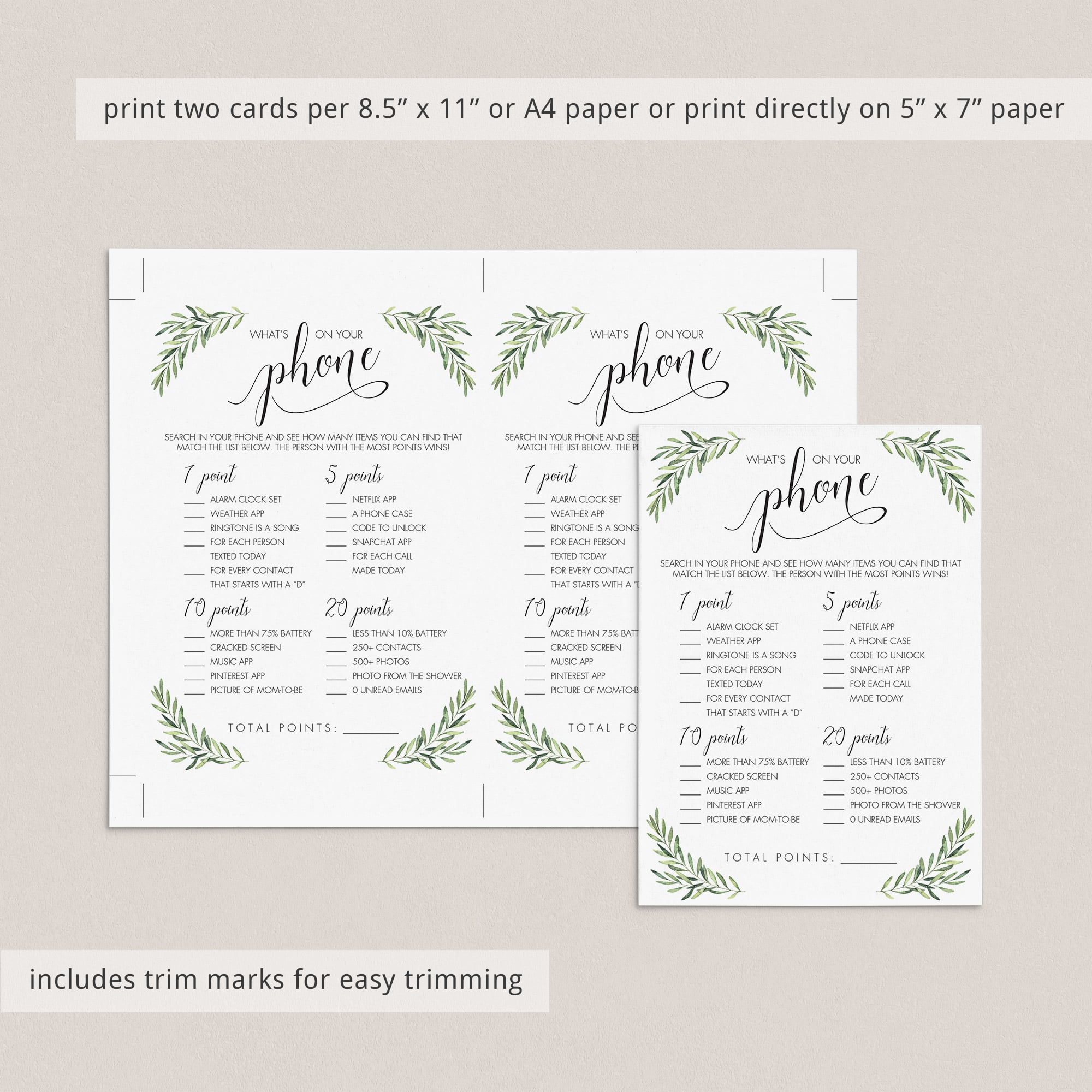 Does this sound familiar to you? Then this gender neutral What’s On Your Phone game for baby shower is the perfect icebreaker game for your party. It’s super easy to prepare for and simple to play. All guests need to play is a smartphone, one of these gender neutral Whats On Your Phone game cards and a pen.