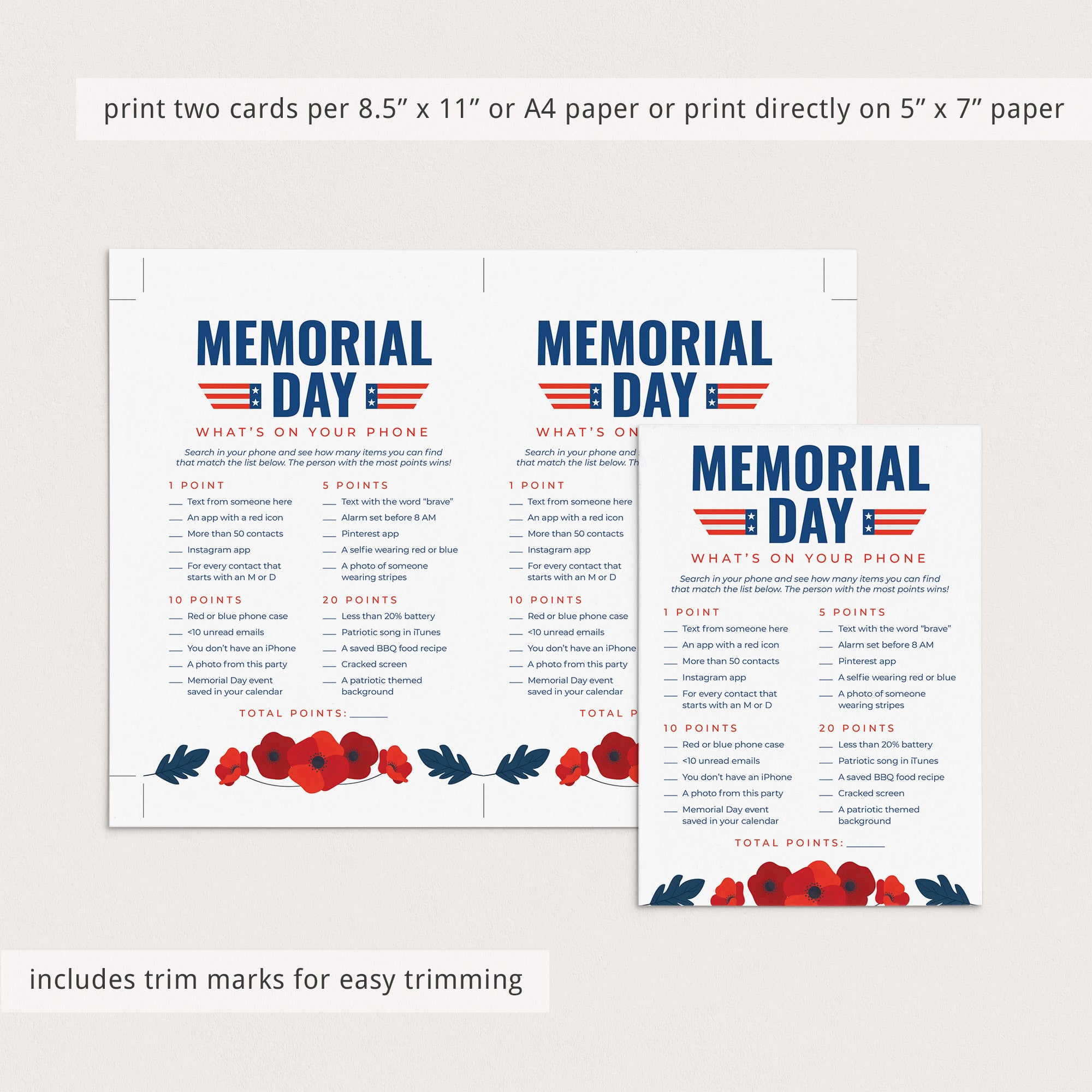 All guests need to play is a smartphone and one of these What's On Your Phone game cards with red poppies.