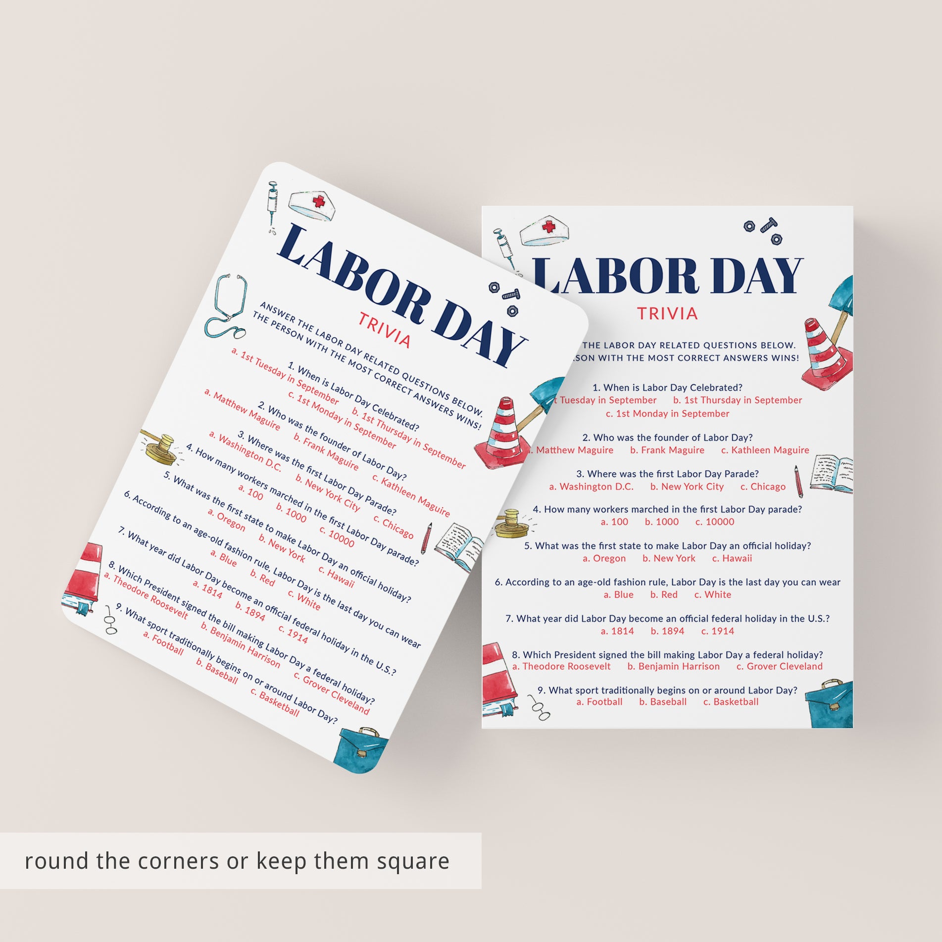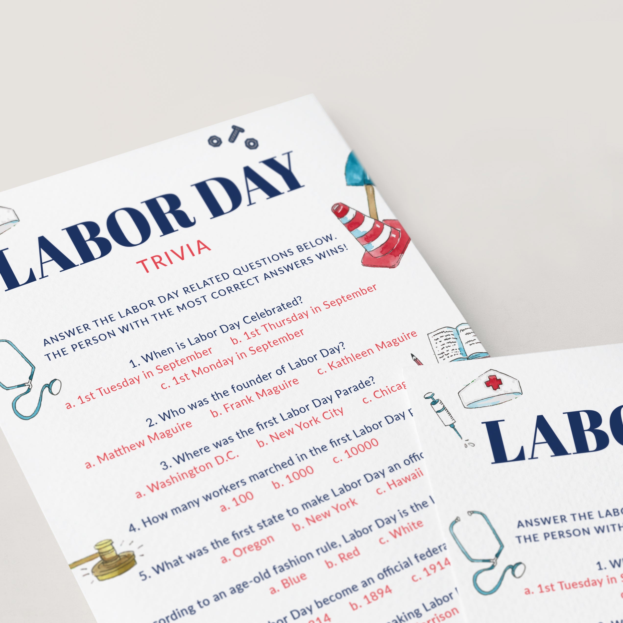 Labor Day Trivia with Answer Key Printable