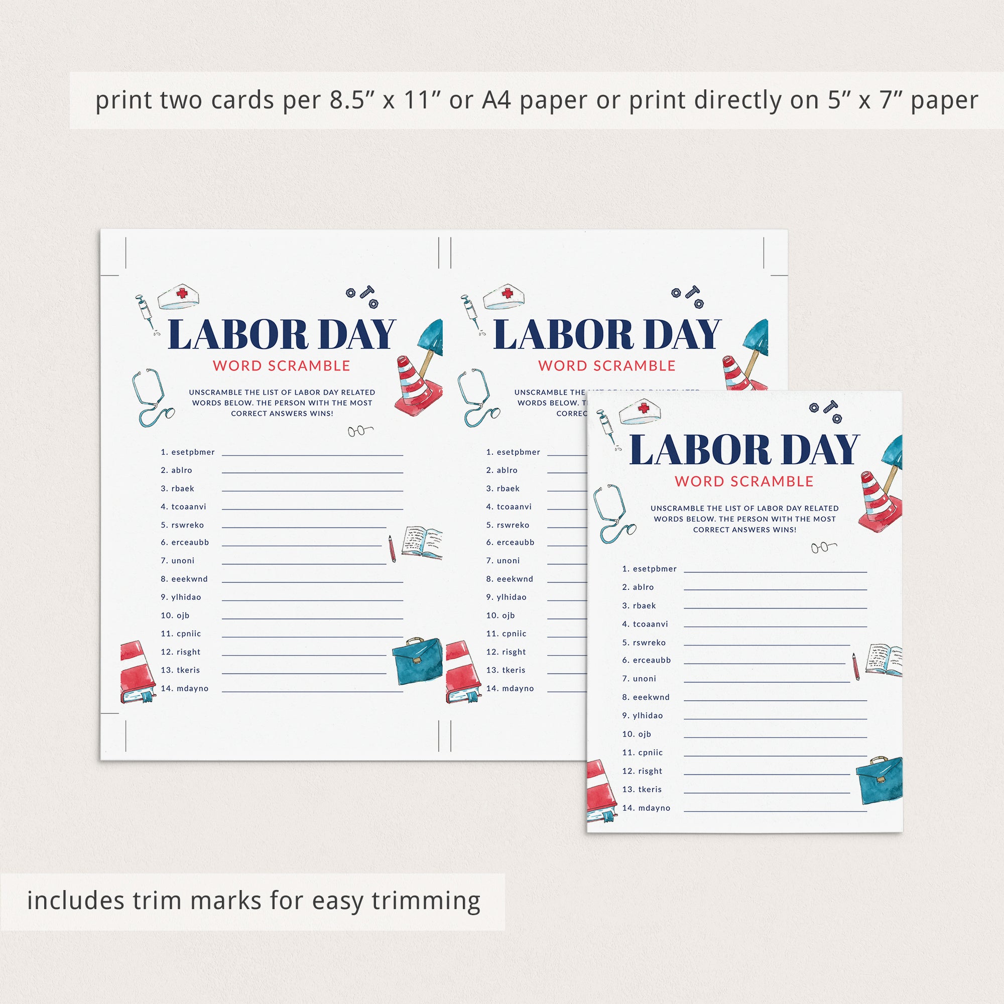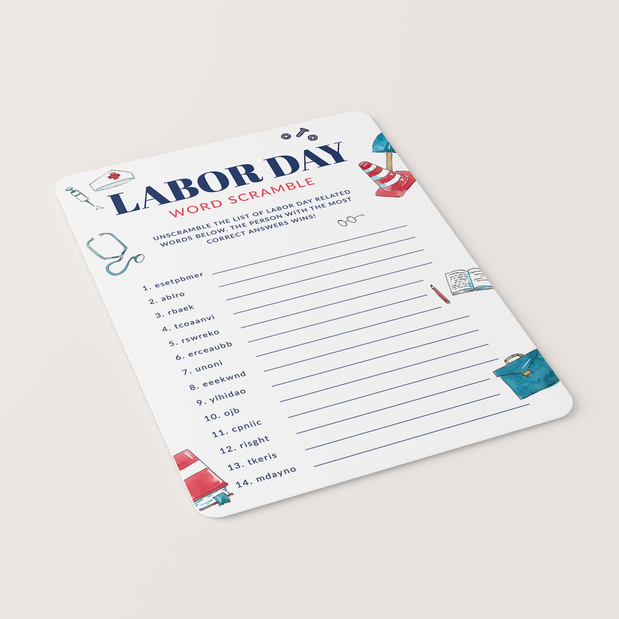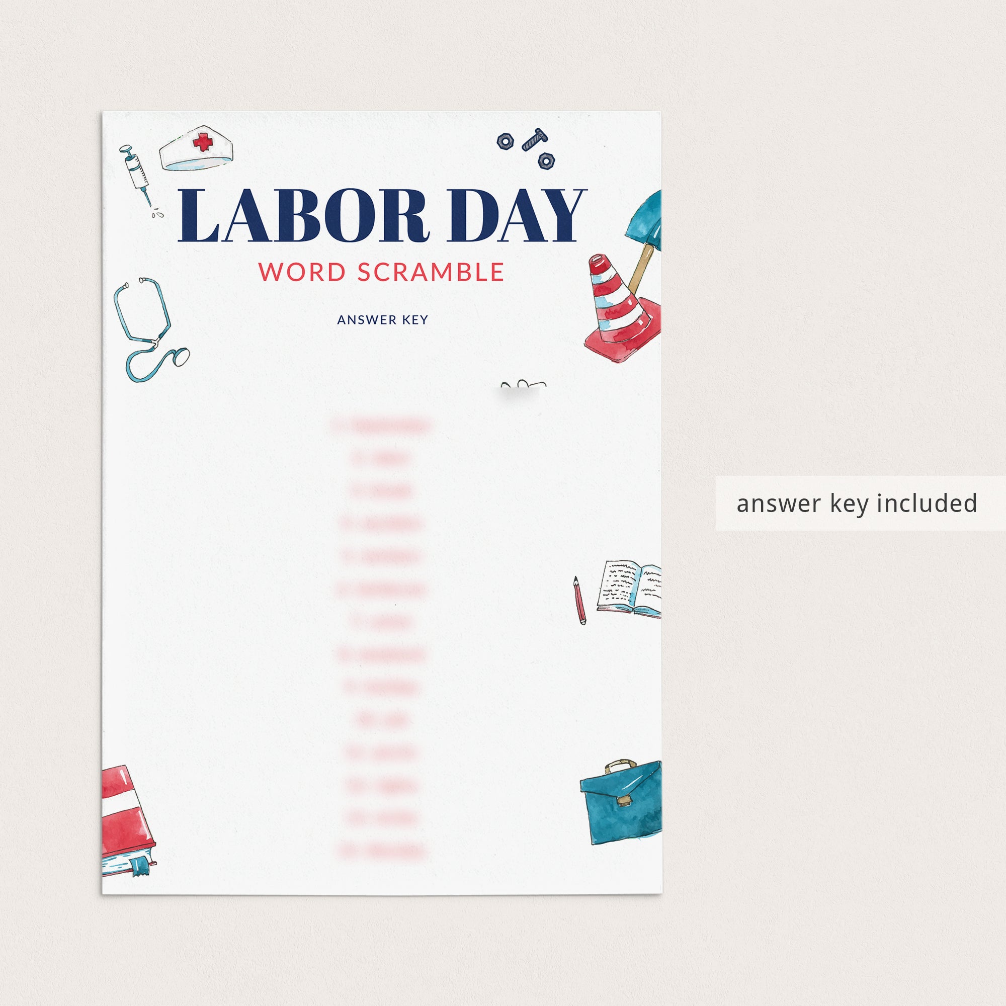 Have everyone try to unscramble the Labor Day-related words. Just in case you have trouble figuring out the scrambled words, an answer key is included.