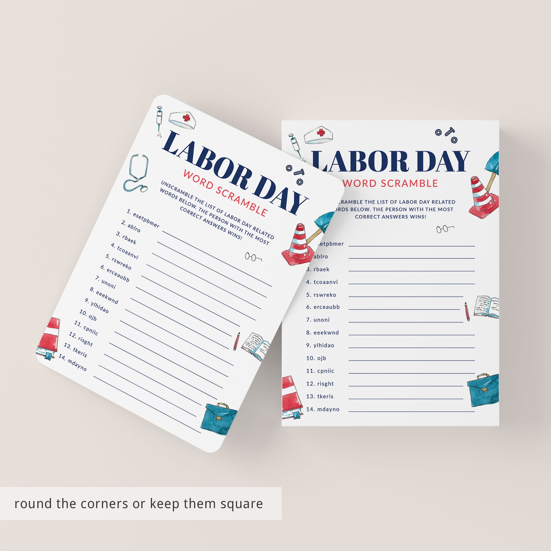 This Labor Day Word Scramble game is a ton of fun for all ages. The game can be used in classrooms, at the office or for your Labor Day weekend celebration with family and friends.