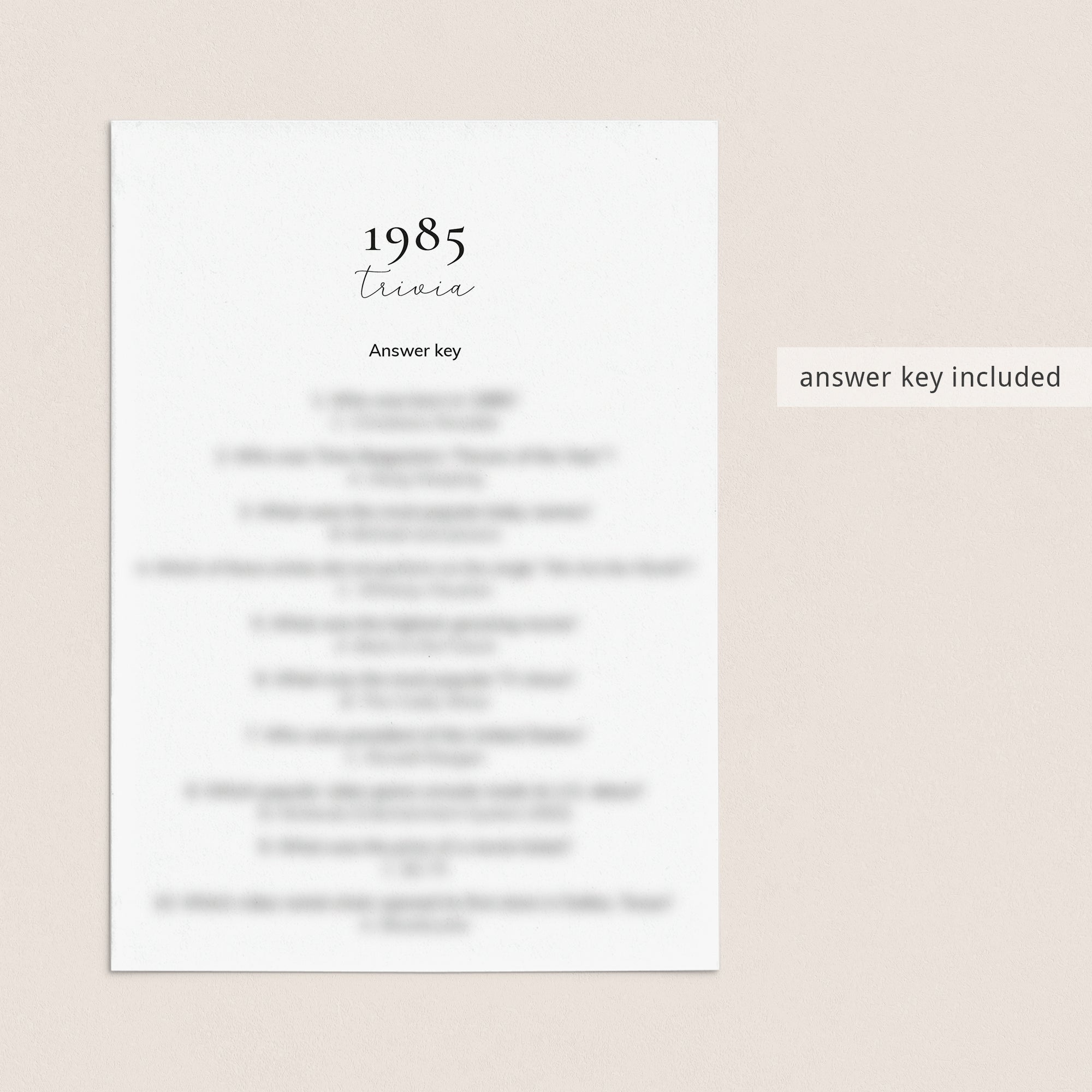 Just in case you are having trouble figuring out the answers, an answer key with the year 1985 quiz answers is included.