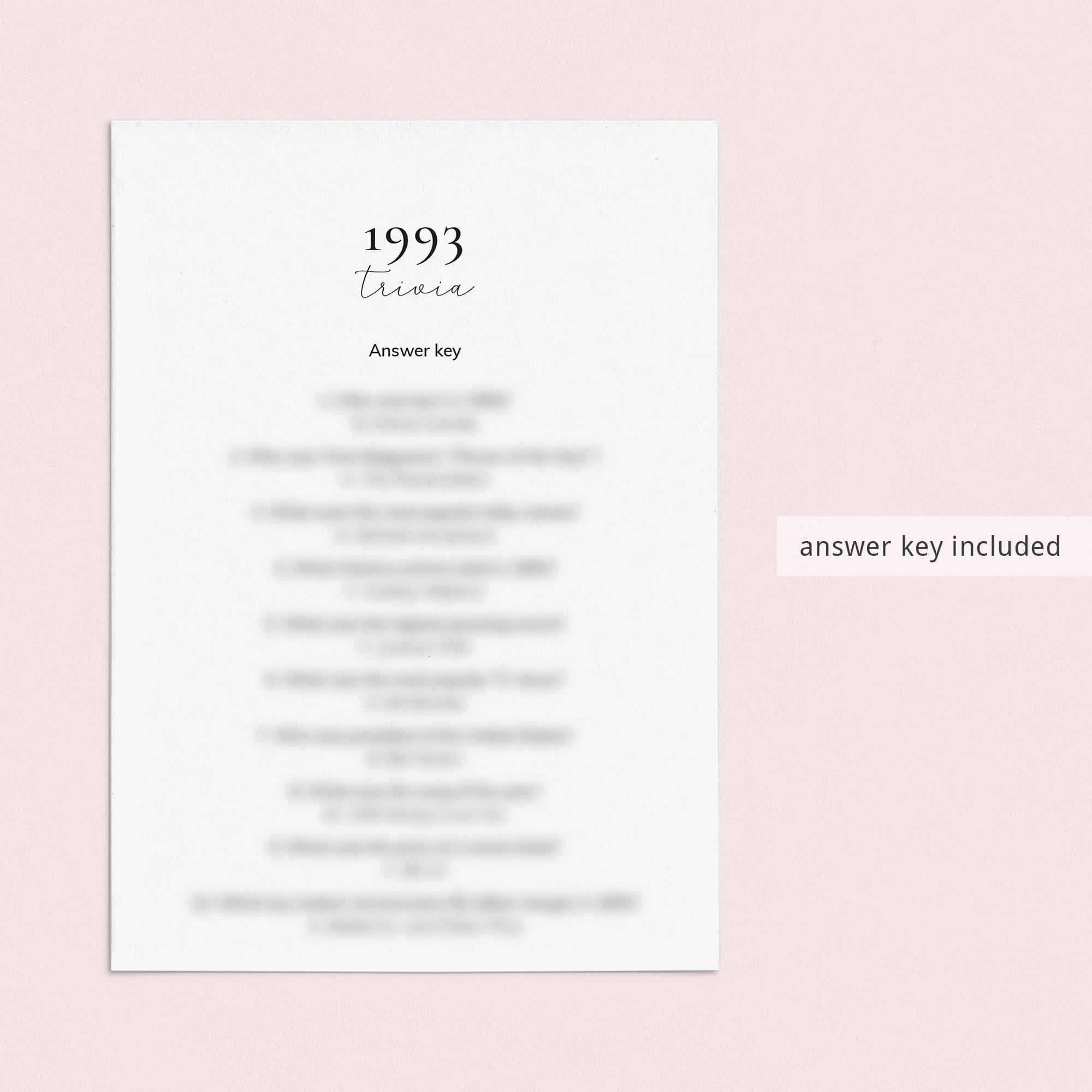 Just in case you are having trouble figuring out the answers, an answer key with the year 1993 quiz answers is included.