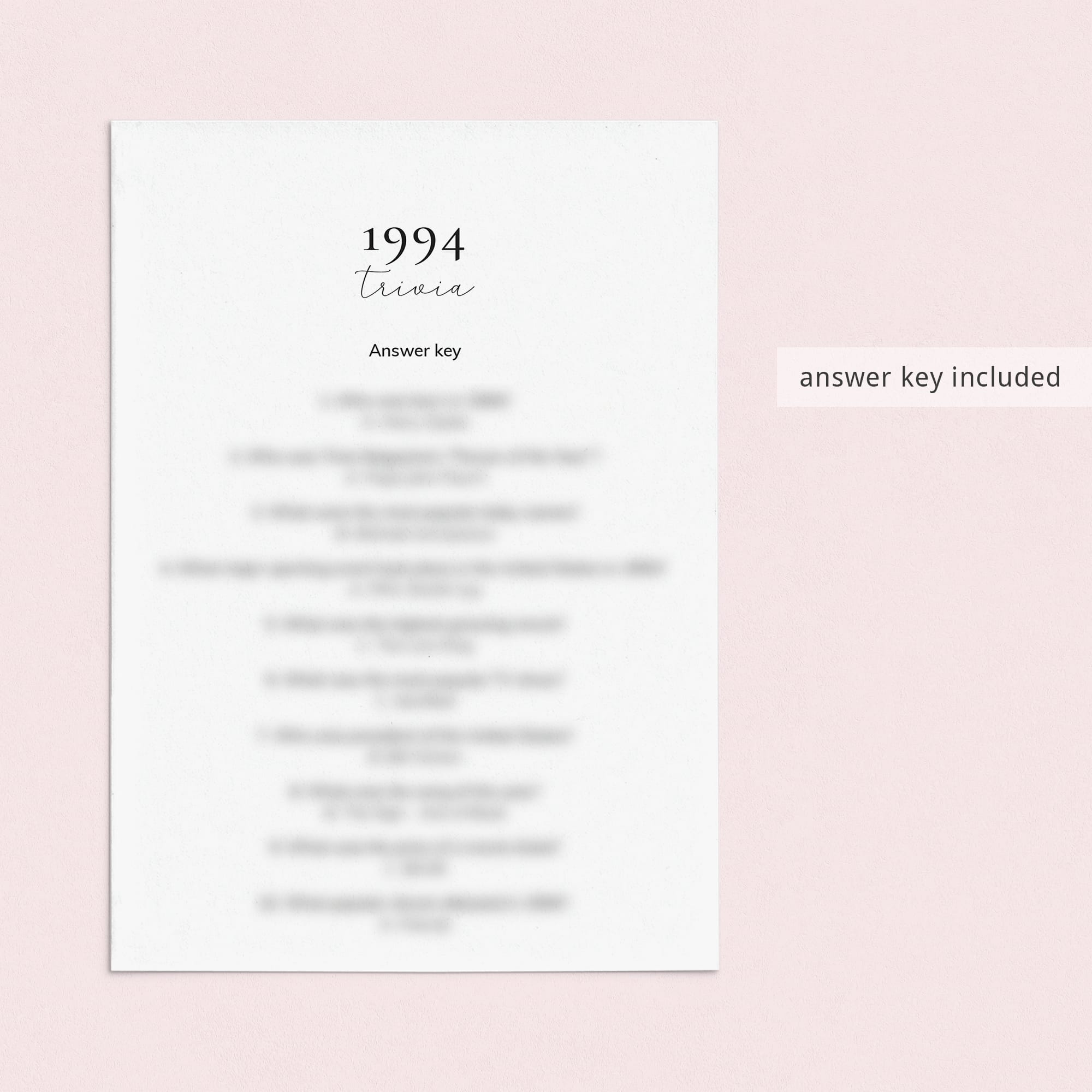 Just in case you are having trouble figuring out the answers, an answer key with the year 1994 quiz answers is included.