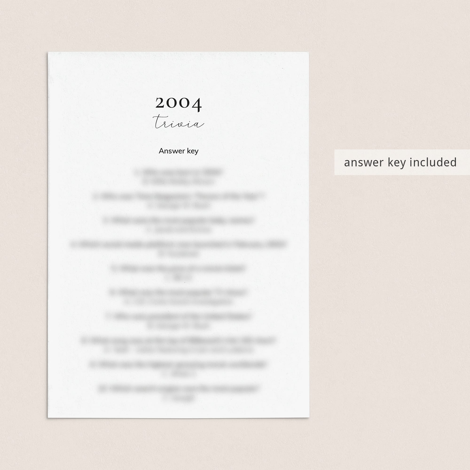 Just in case you are having trouble figuring out the answers, an answer key with the year 2004 quiz answers is included.