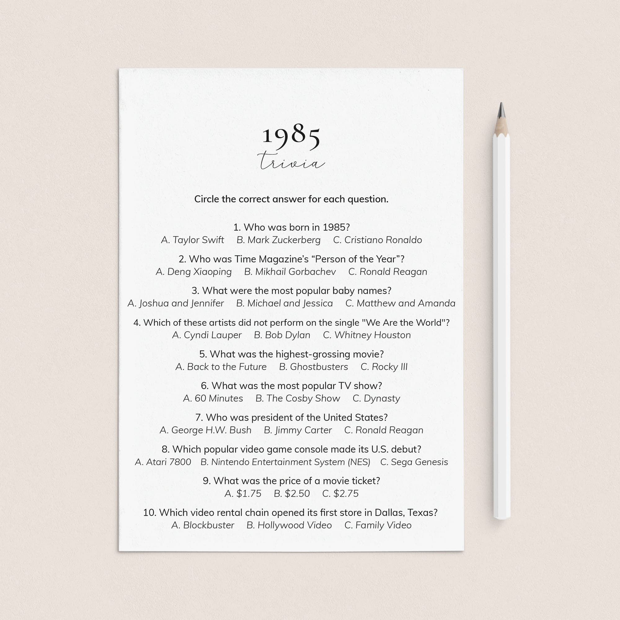 • 1985 Trivia (answer key included)