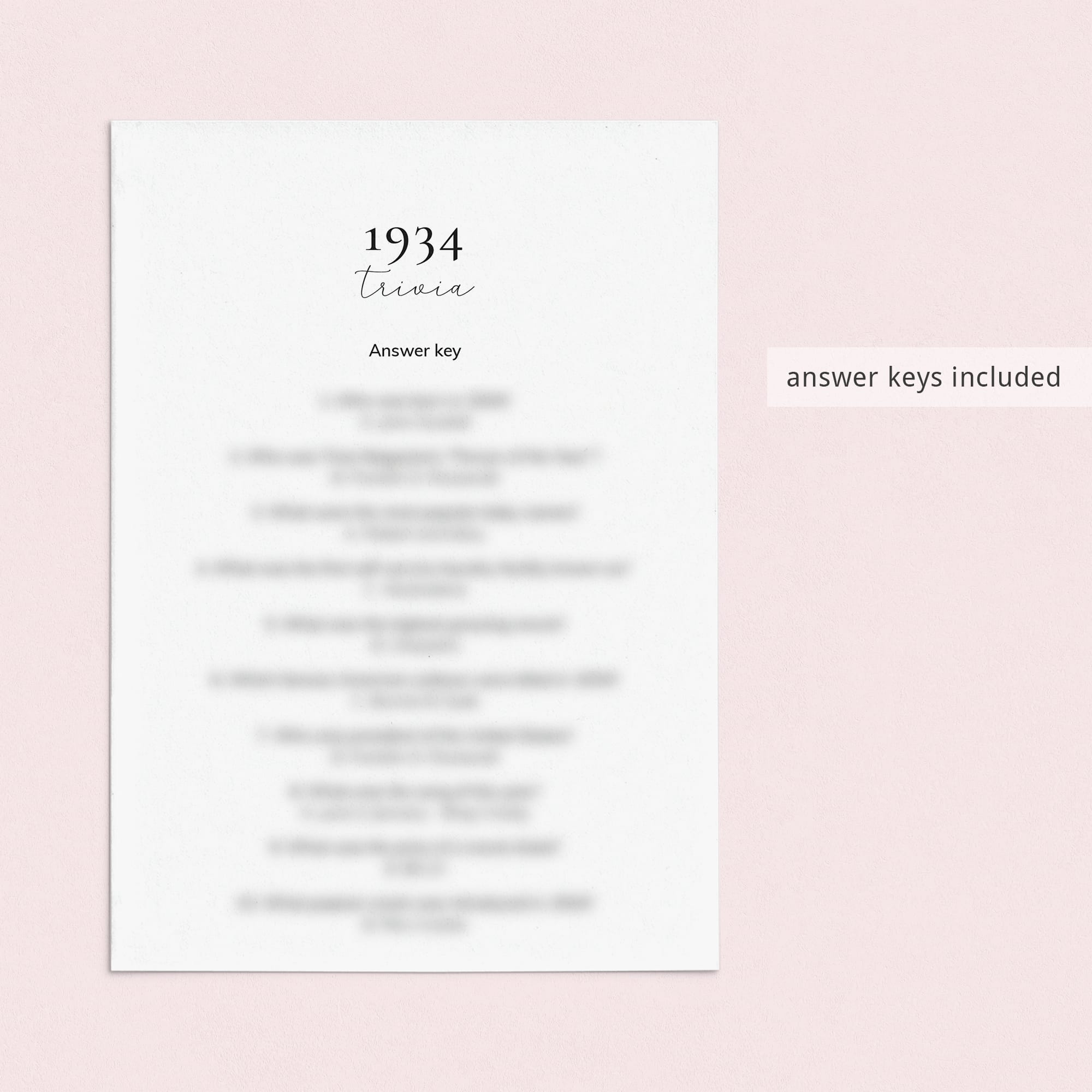 • 1934 Trivia (answer key included)