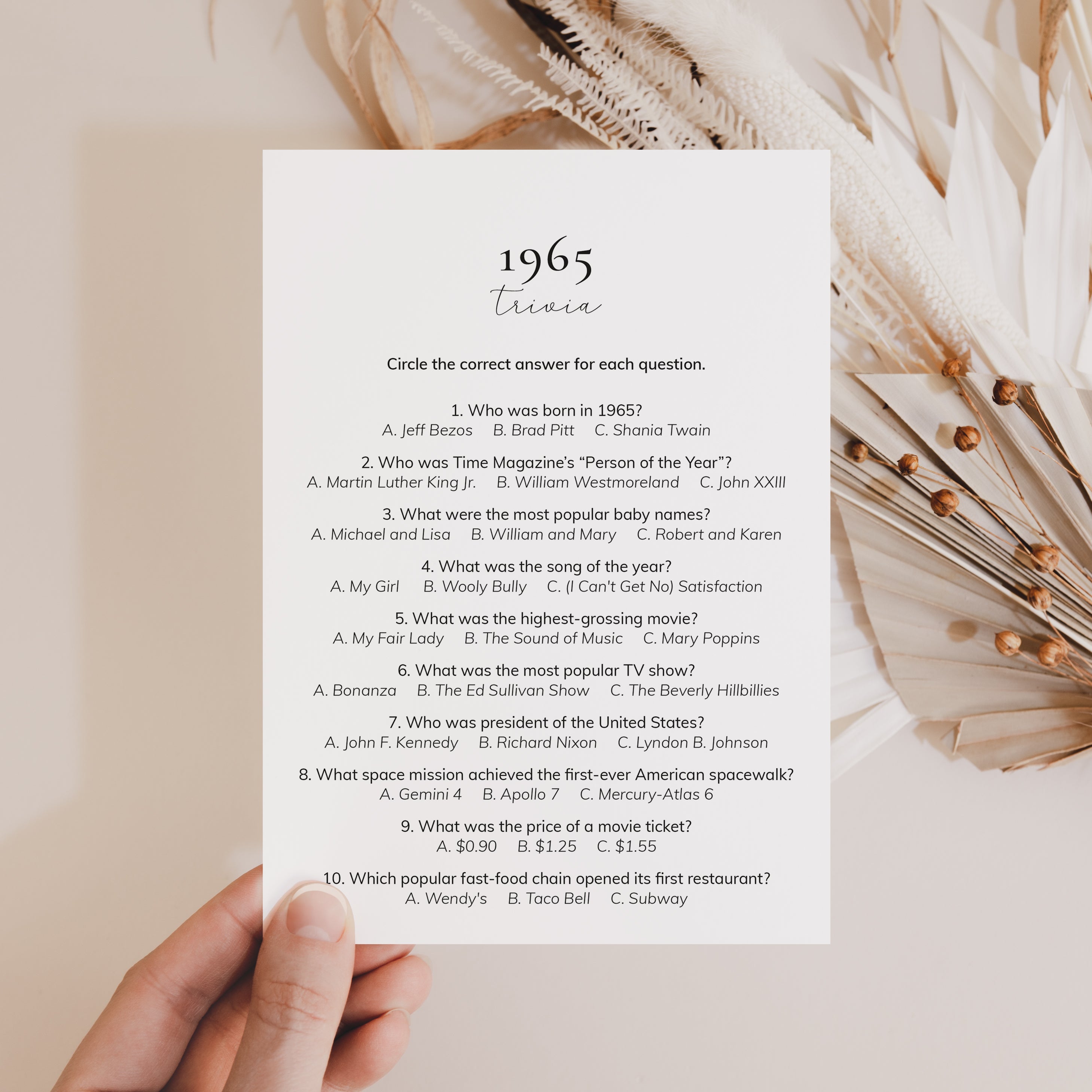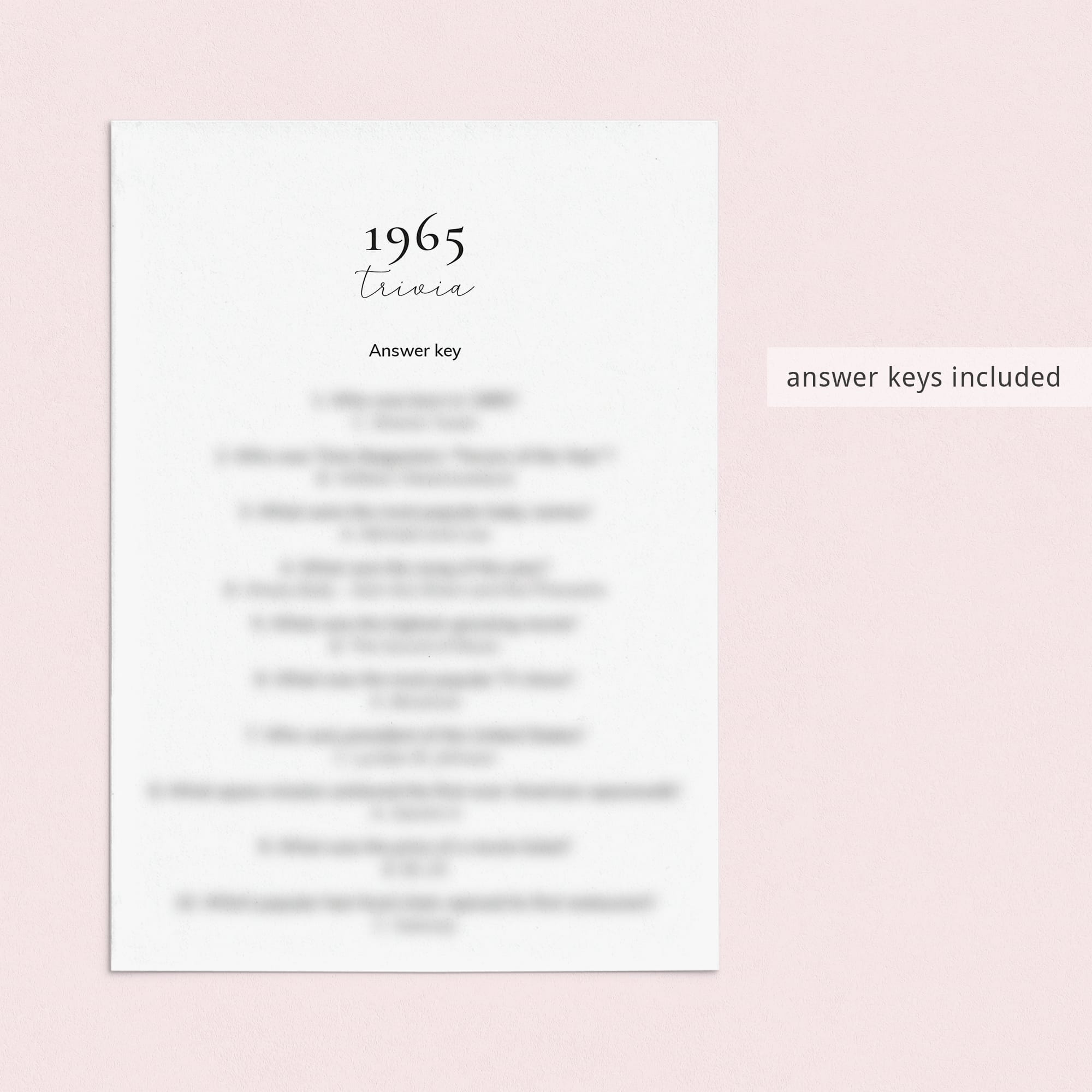 • 1965 Trivia (answer key included)