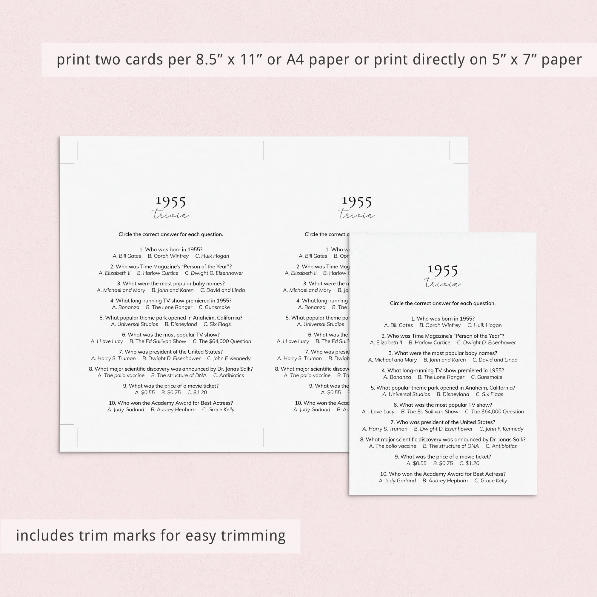 The printable 1955 Birthday Games Bundle is an instant download. After purchase you will receive a download link immediately on screen. Also within minutes of your order and payment, an e-mail will be sent to you with a link for your download.