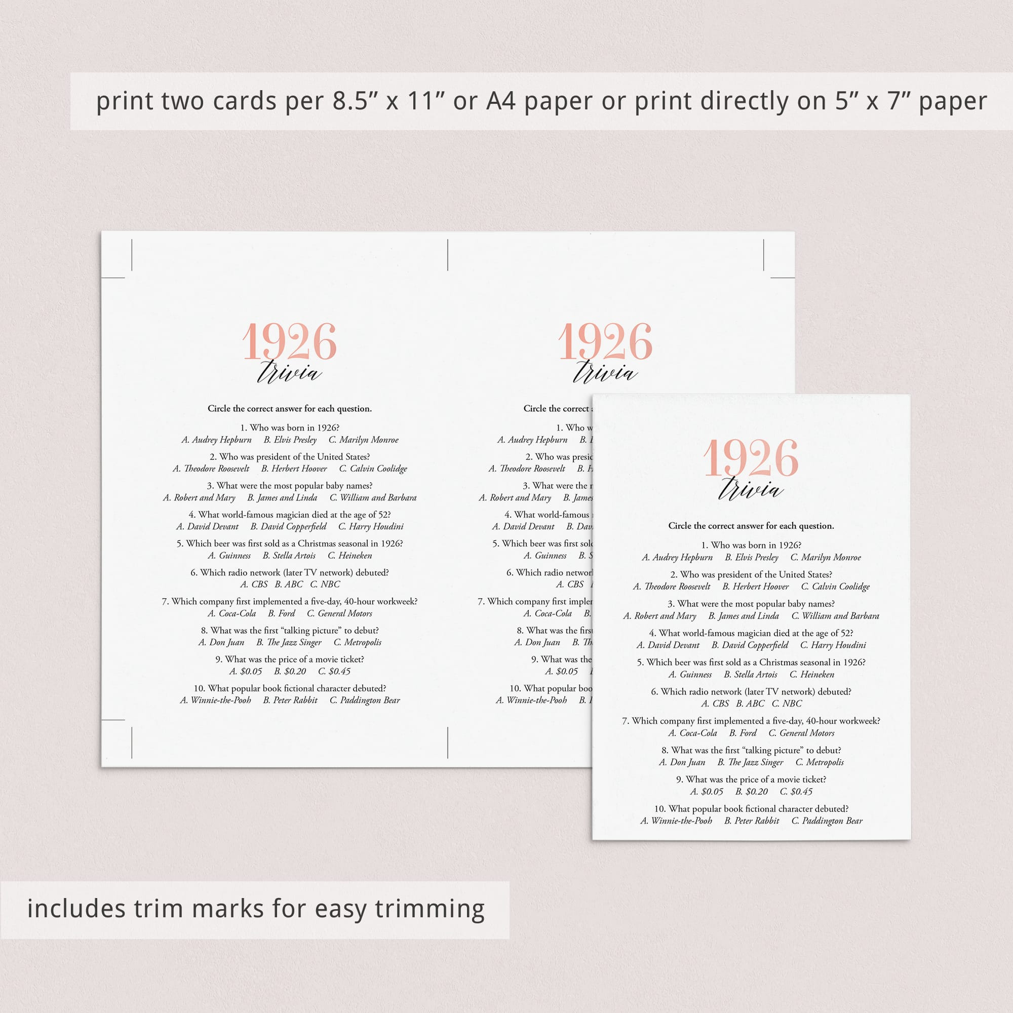 This 1926 trivia is a digital download. After purchase you will receive a download link immediately on screen. Also within minutes of your order and payment, an e-mail will be sent to you with a link for your download.