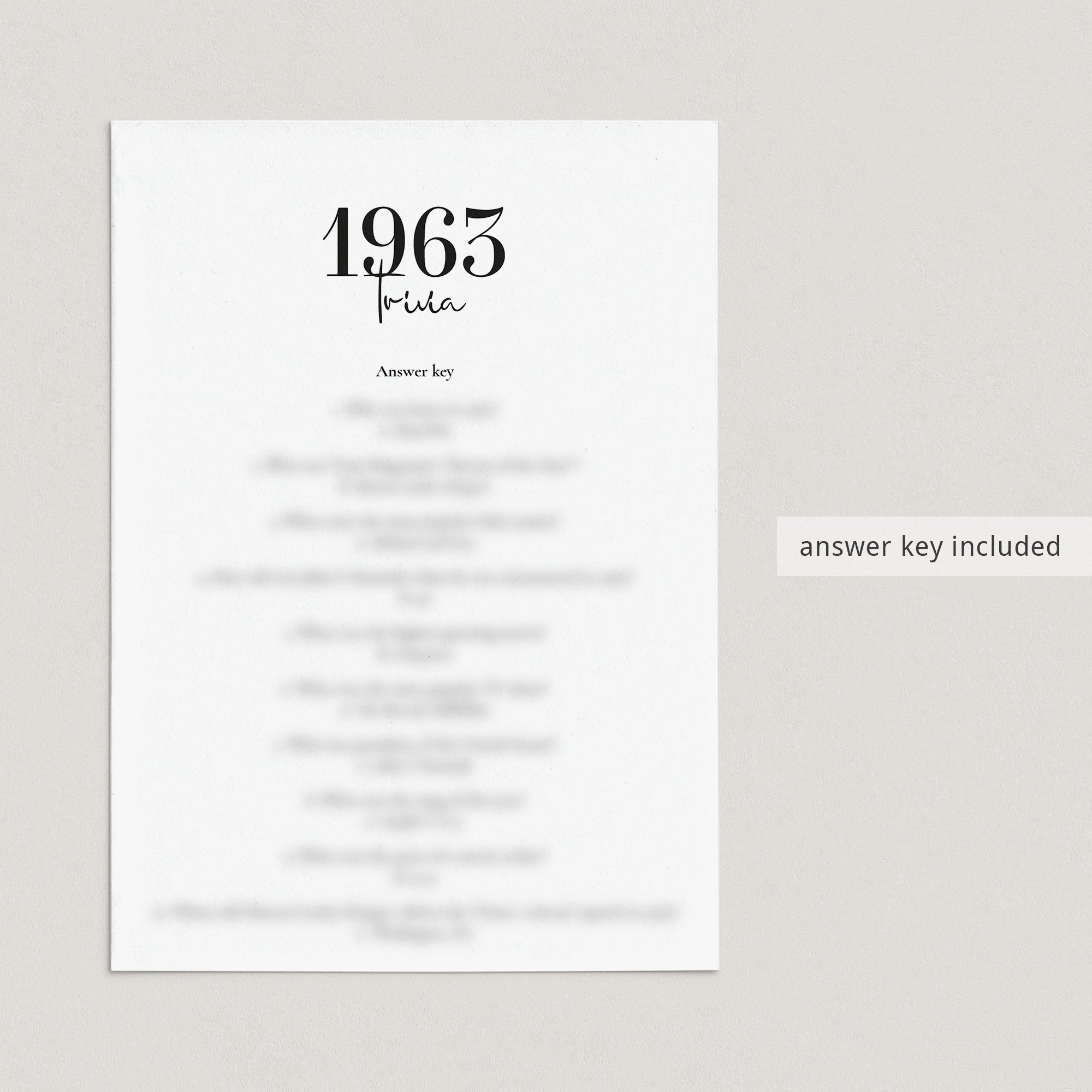 Just in case you are having trouble figuring out the answers, an answer key with the 1963 trivia answers is included.