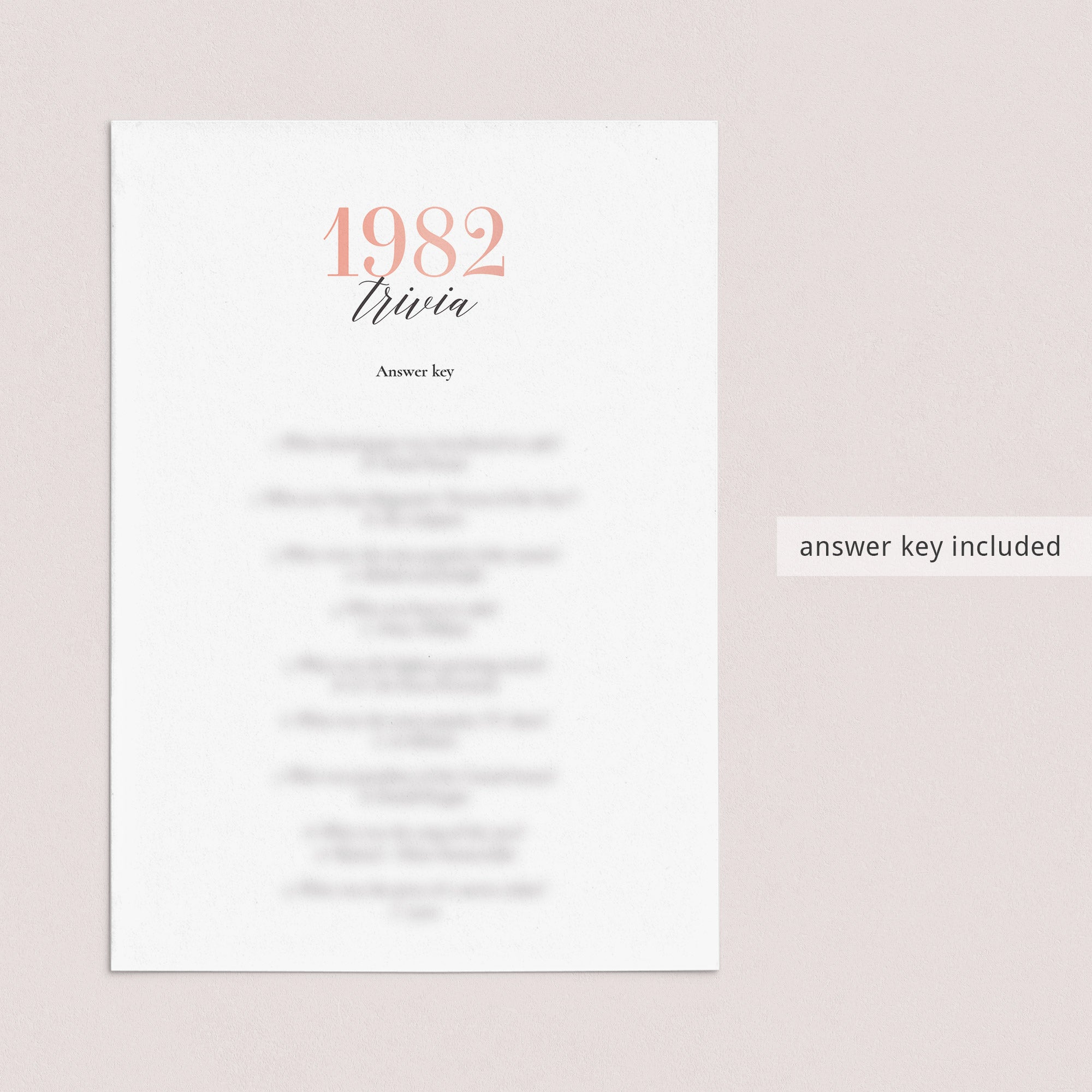 Just in case you are having trouble figuring out the answers, an answer key with the 1982 trivia answers is included.