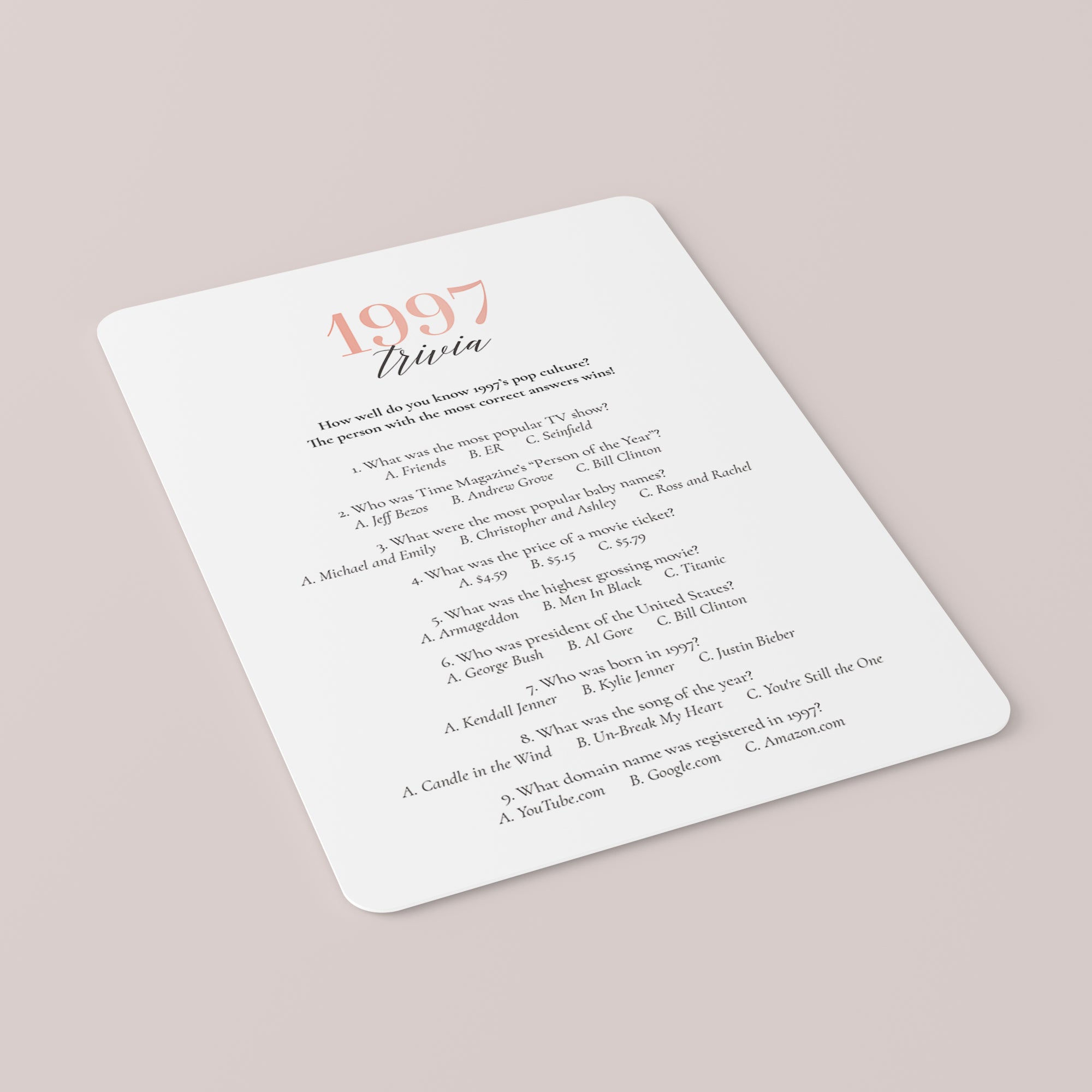 Are you looking for a fun game for a 28th anniversary or 28th birthday party? Look no further! This 1997 trivia game is such a fun game to play with your friends and family. Test your guests how well they know 1997's pop culture.