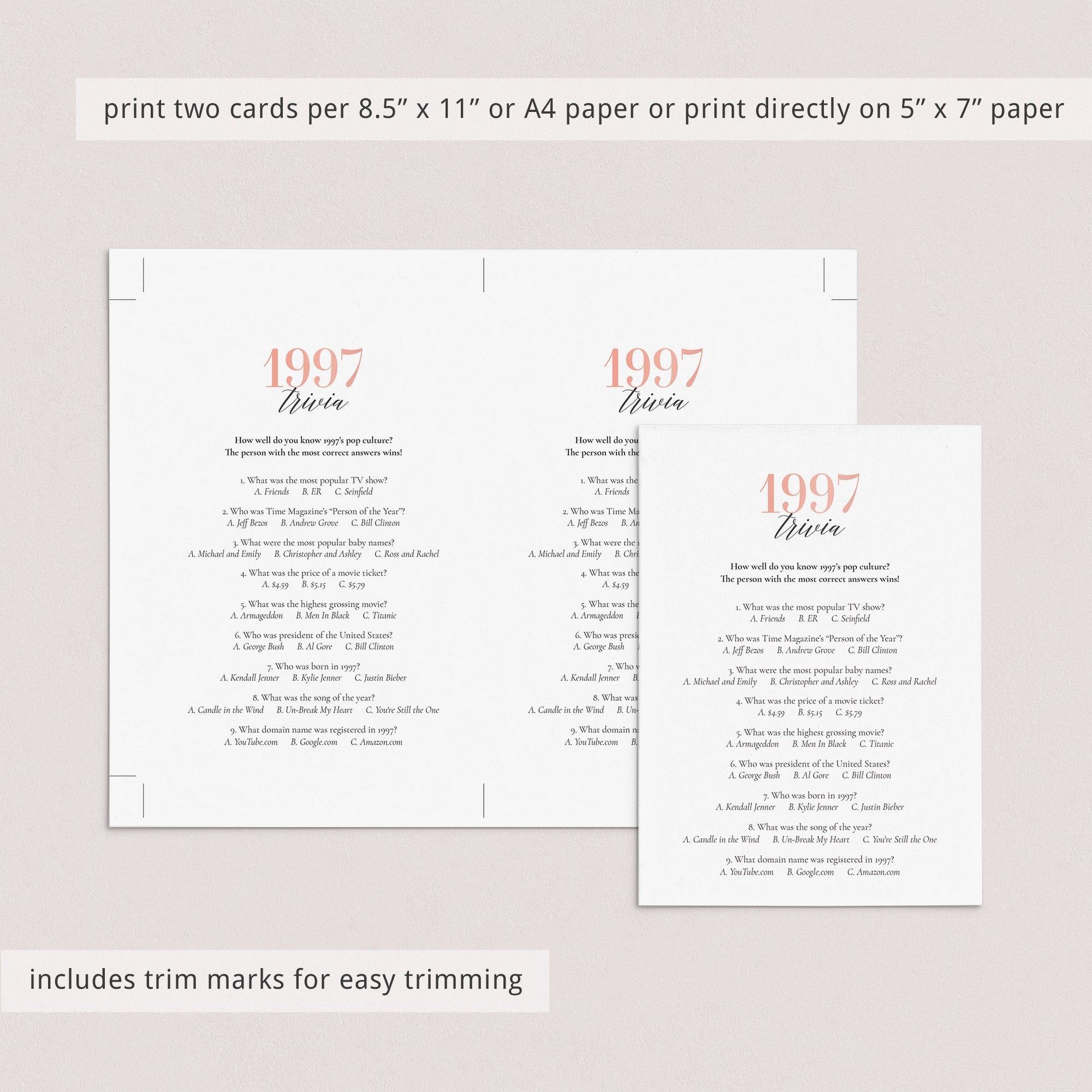1997 Trivia Questions and Answers Printable by LittleSizzle
