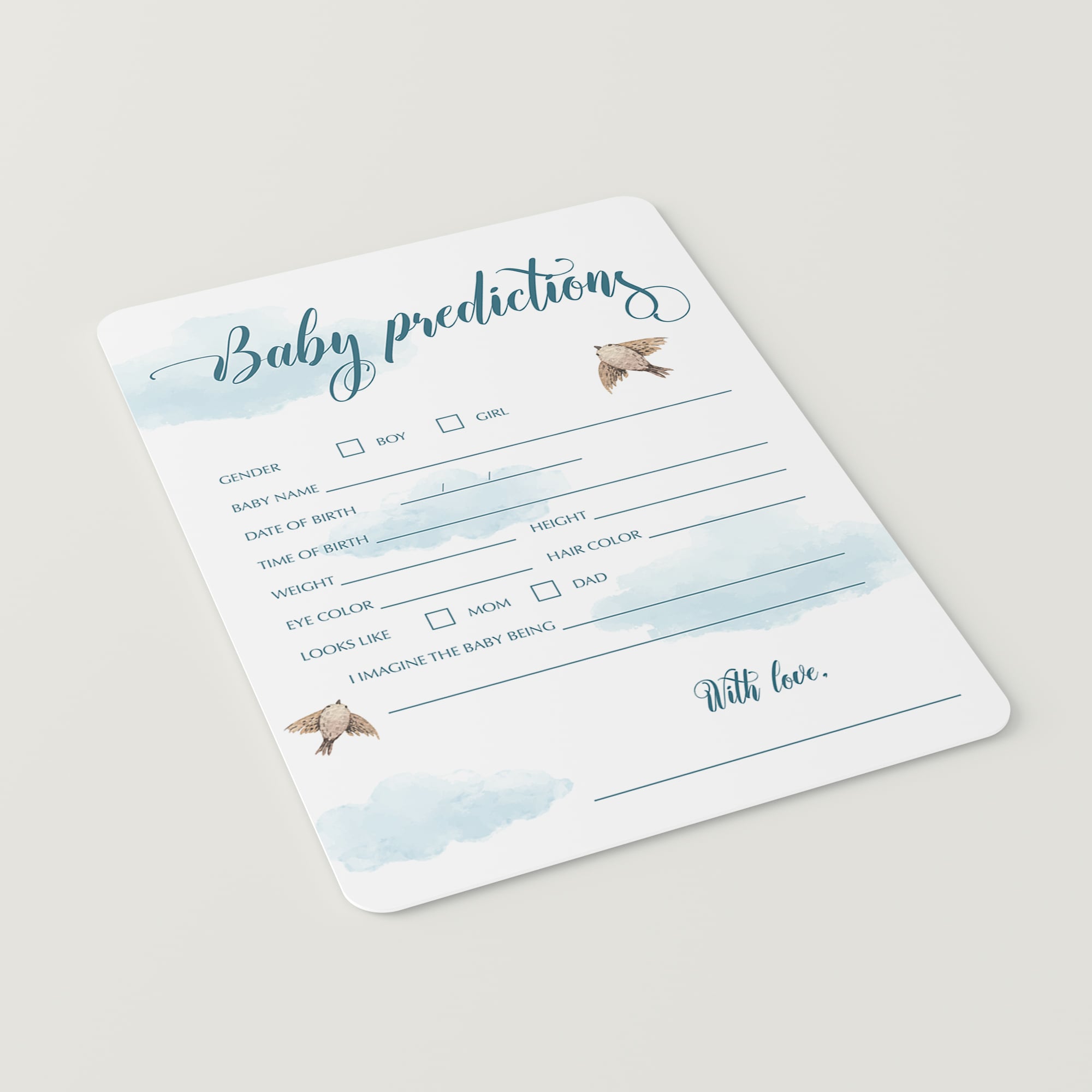 Let your guests make their best predictions at all the baby's birth stats and WOW everyone with your air balloon themed baby shower prediction cards!