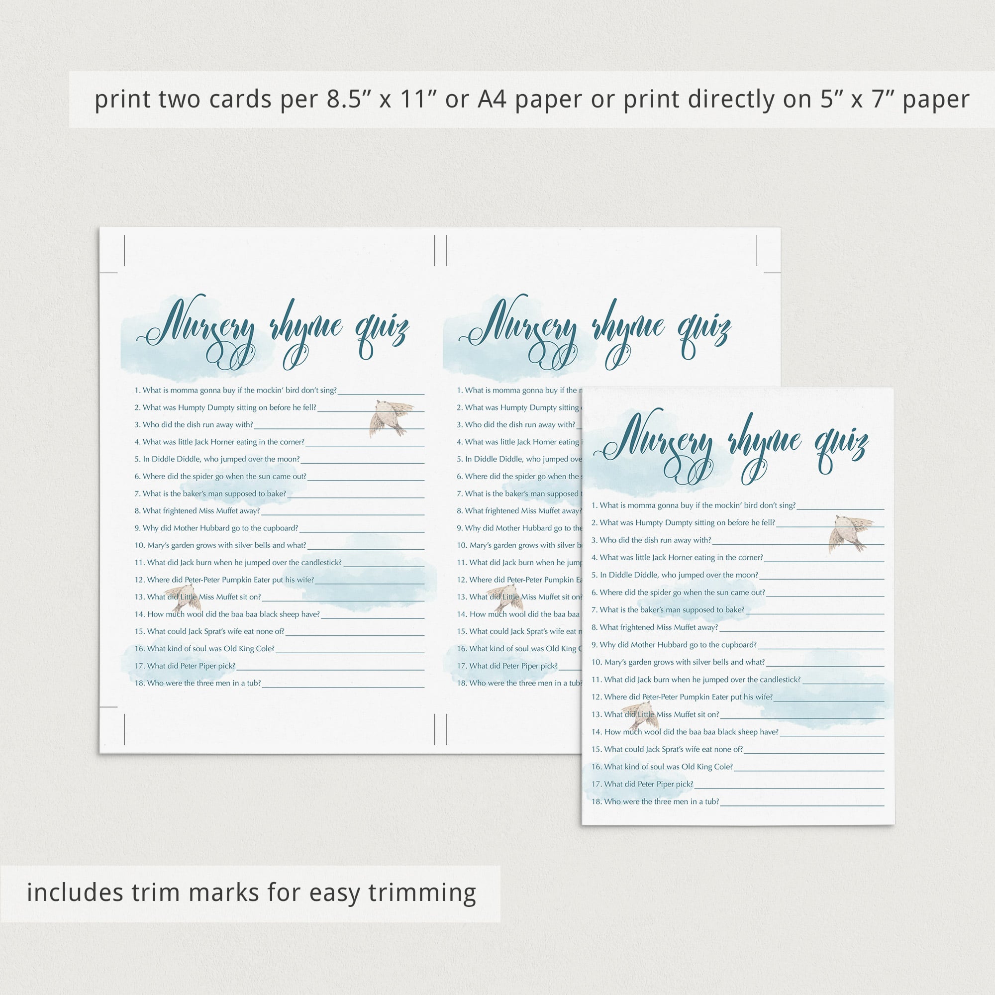 Entertain your baby shower guests with this pack of 8 blue baby shower games. The amazing set with blue watercolor clouds includes everything you need to entertain your guests with a variety of activities and create beautiful keepsakes for the mom-to-be. The games are perfect for a boy baby shower or hot air balloon themed baby party.