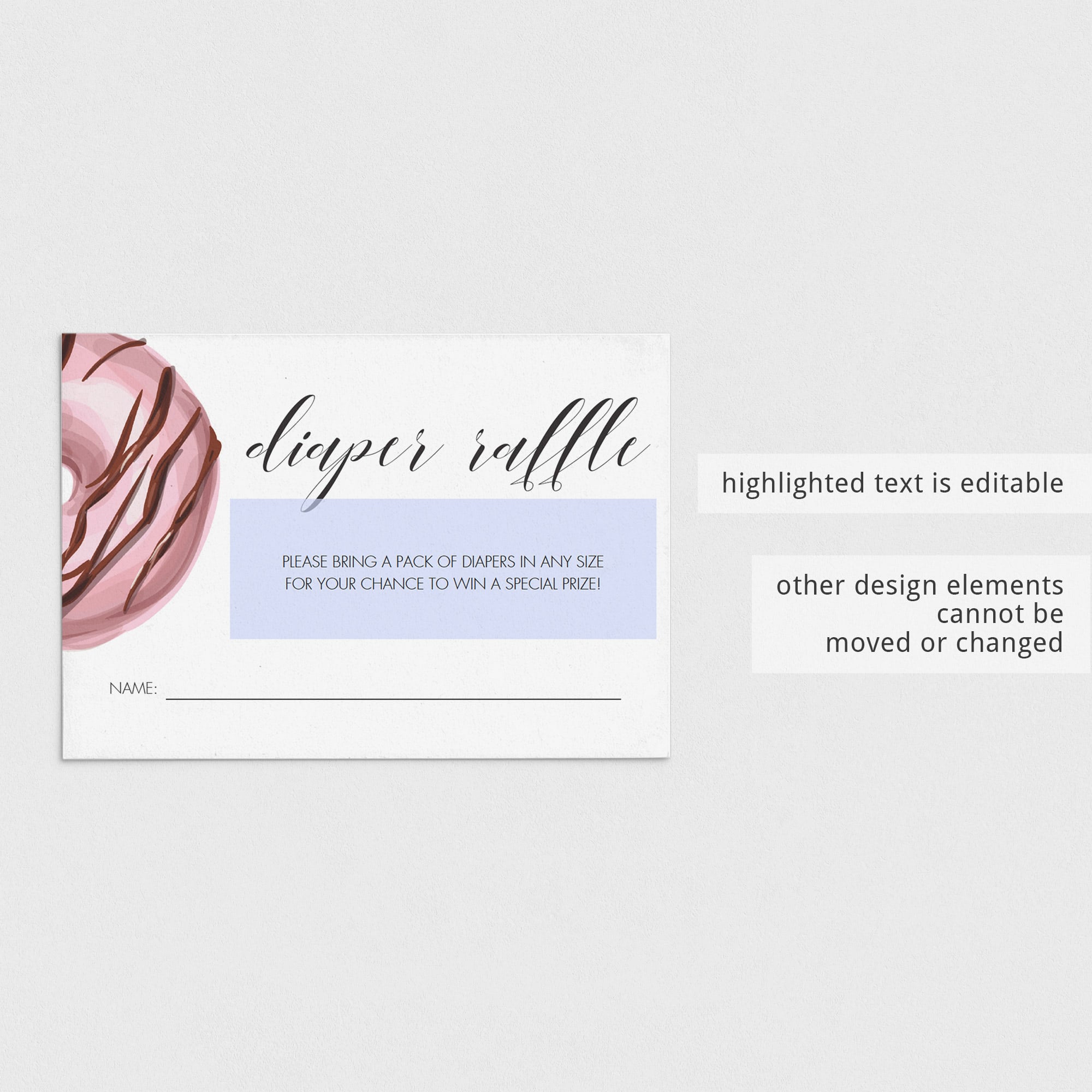 Who doesn't love a diaper raffle during a baby shower? Use these pink donut diaper raffle tickets to let your guests know they can win a great prize by bringing a pack of diapers. Include the inserts in your girl baby shower invitations before sending them out.
