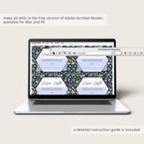 • 1 Editable PDF sized 8.5” x 11” with trim marks for 4 times the 3.5" x 5" design