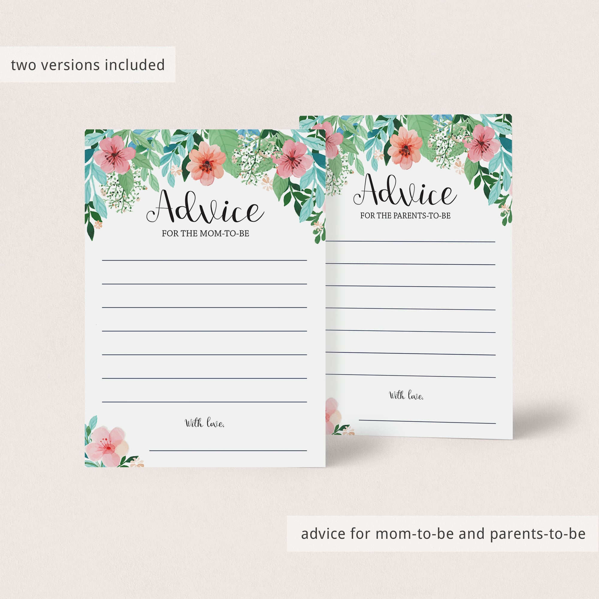 • Advice card (two versions included, advice for the mom-to-be and advice for the parents-to-be)