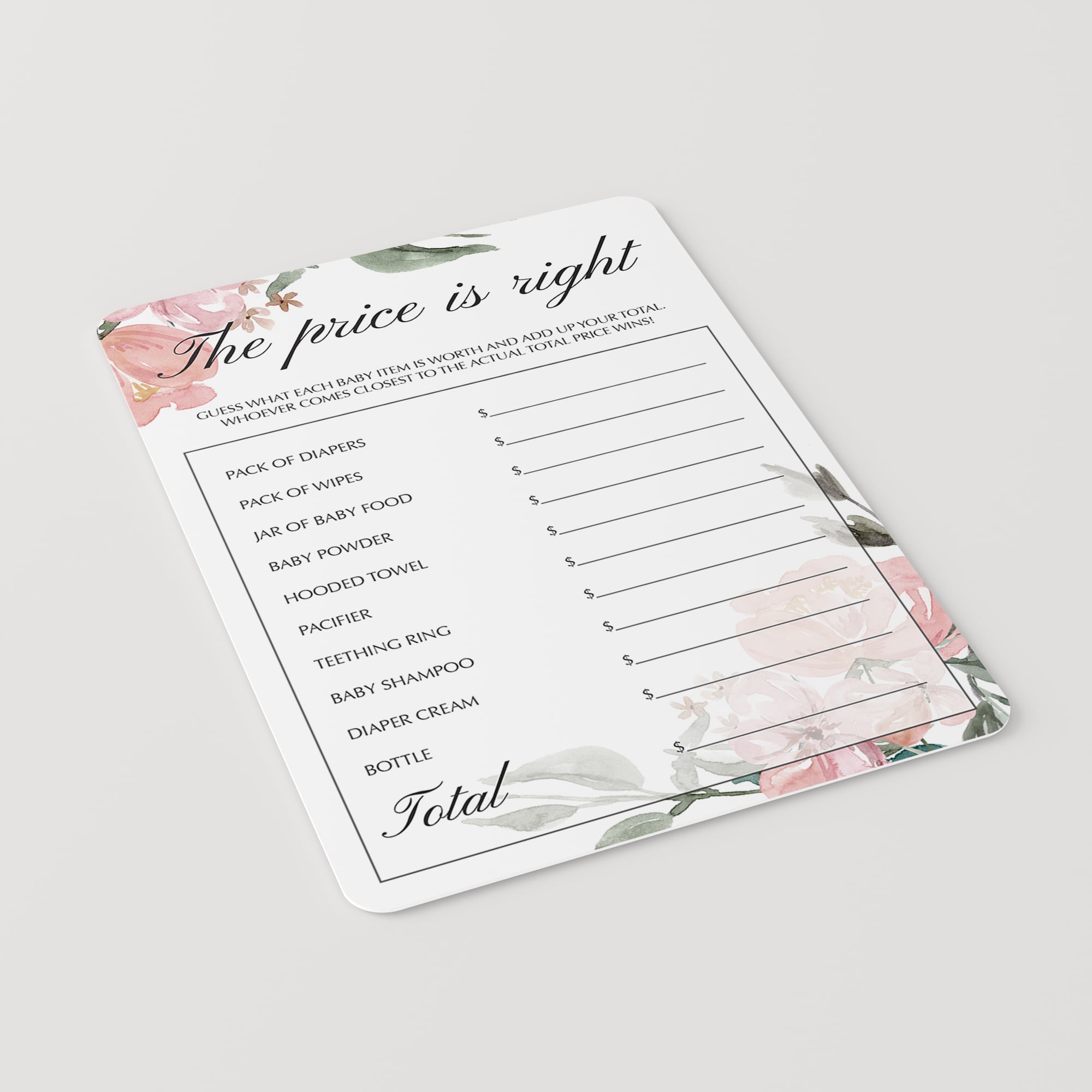 Play "the Price is Right" with these elegant floral watercolor baby shower games. The chic cards would be perfect for a neutral or girl baby shower and will create an enjoyable moment for all of your guests.