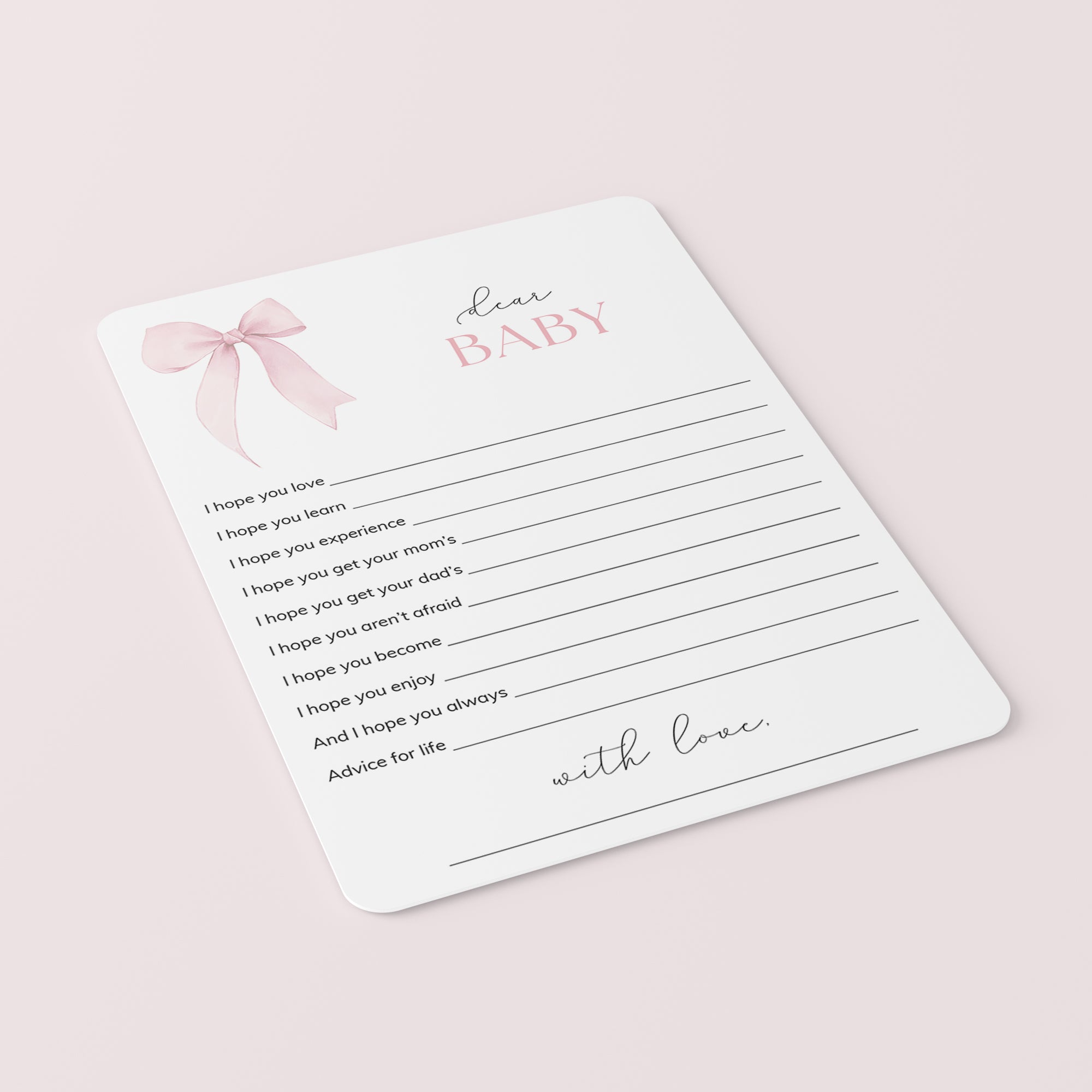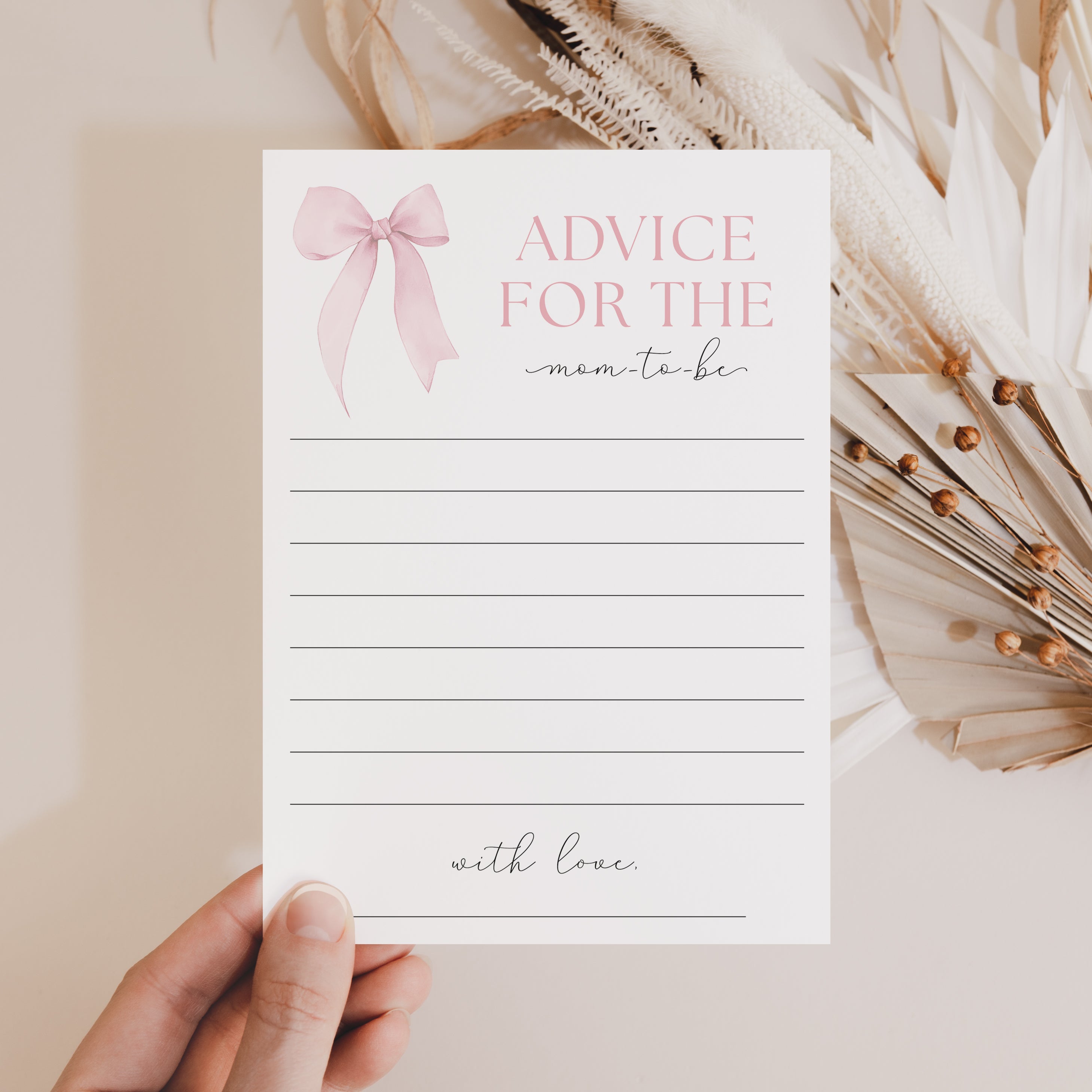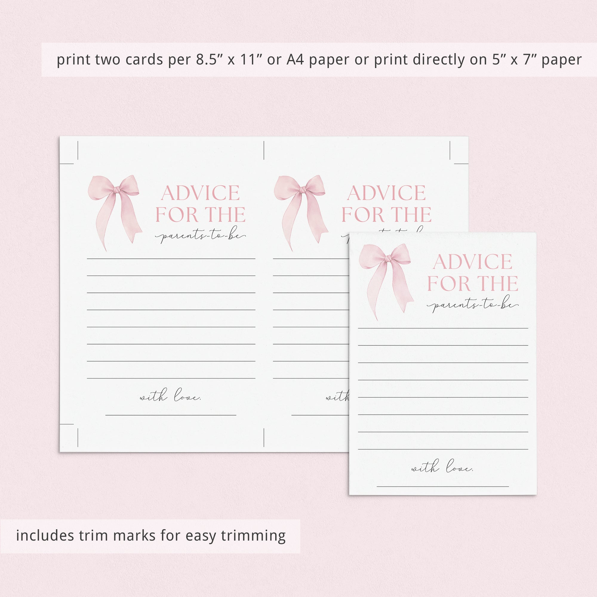 • Advice card (two versions included, advice for the mom-to-be and advice for the parents-to-be)